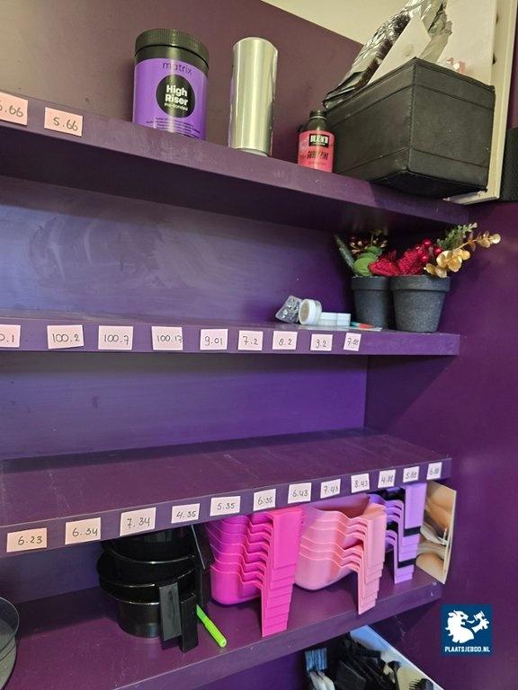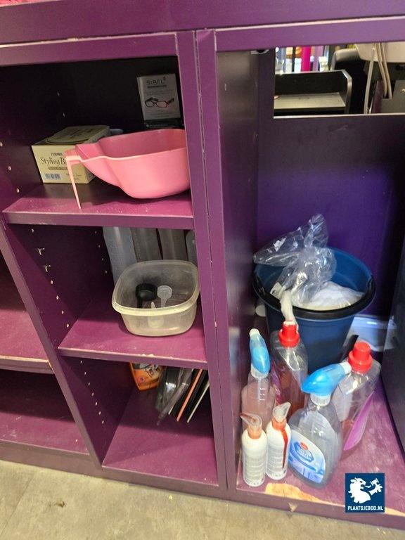 1 x Partij diverse haarverzorgingsproducten en diversen w.o. schorten etc. LET OP: de Koper verplicht zich alle zaken in de kast mee te nemen!