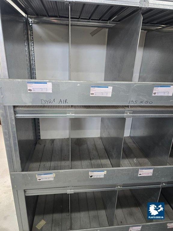 1 x Partij diverse installatiematerialen inclusief 2 x 3 x gekoppelde grijpvoorraad stelling ca. 370 x 60 x 200 cm