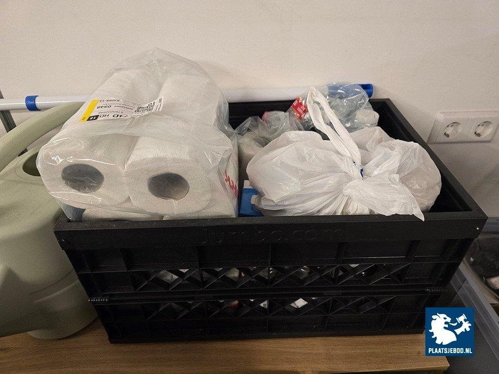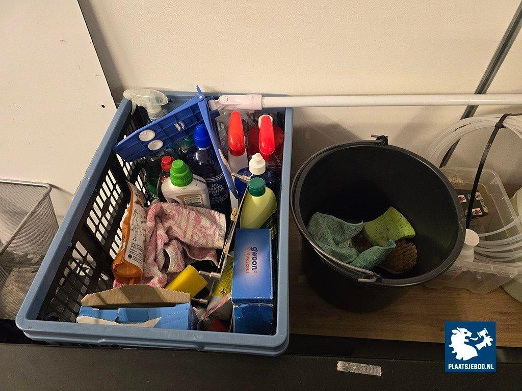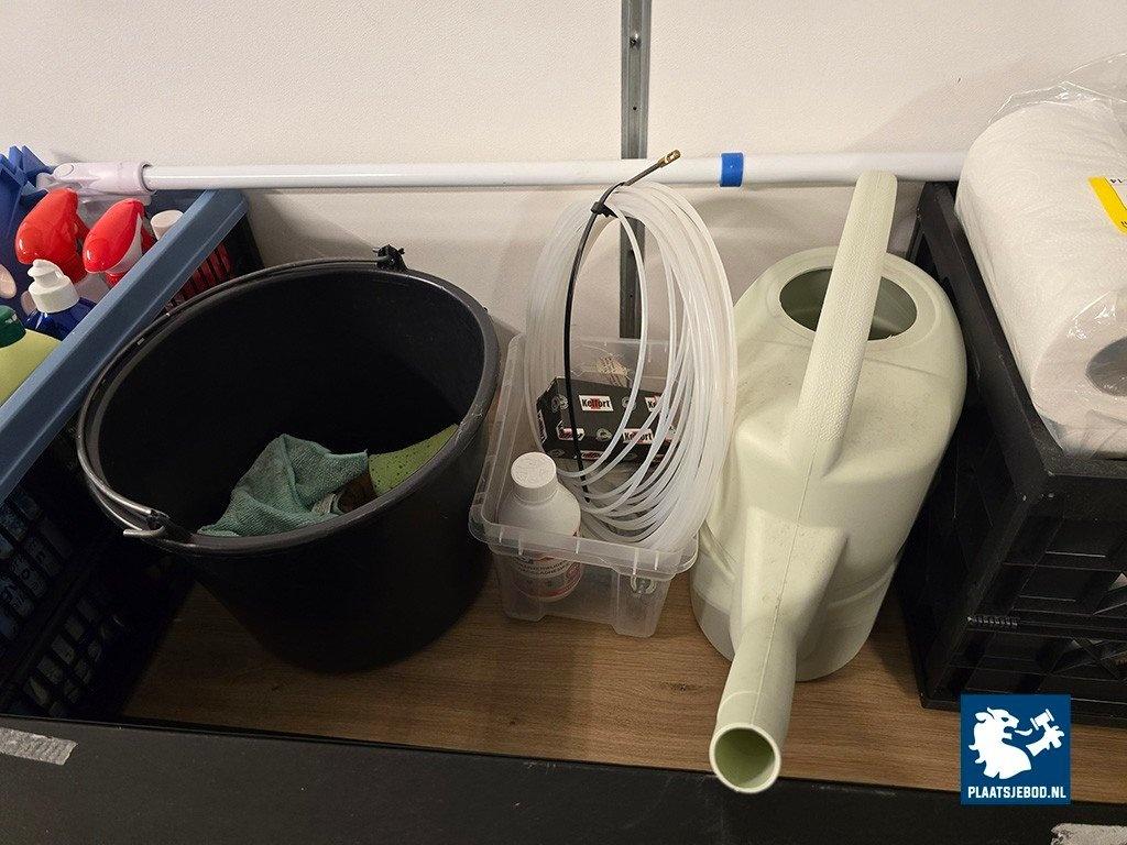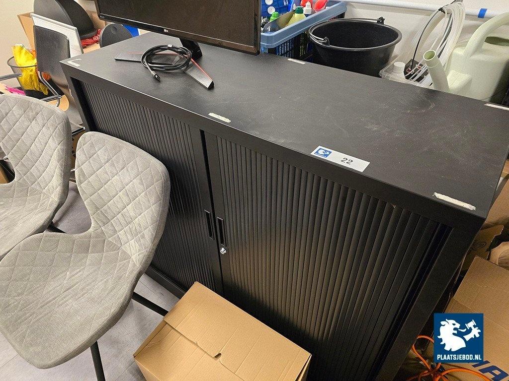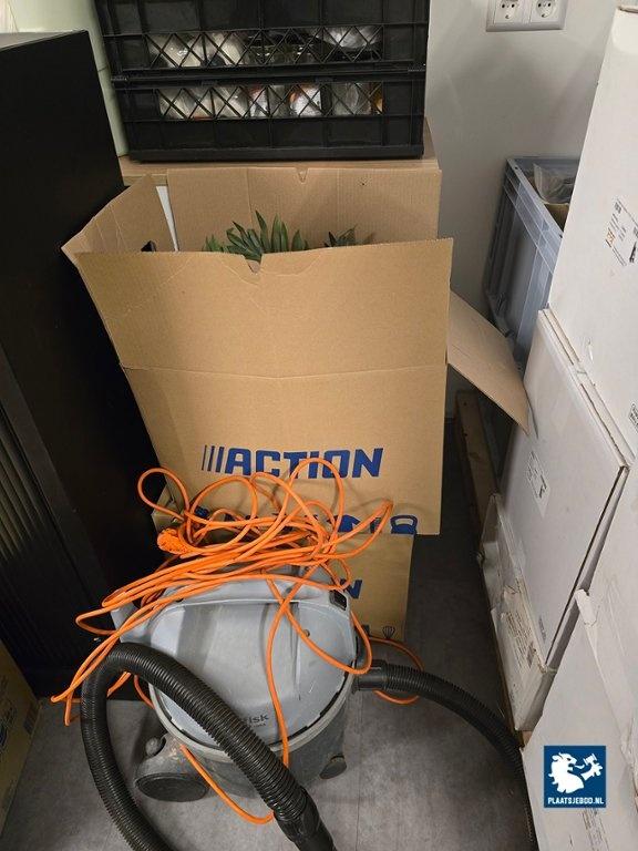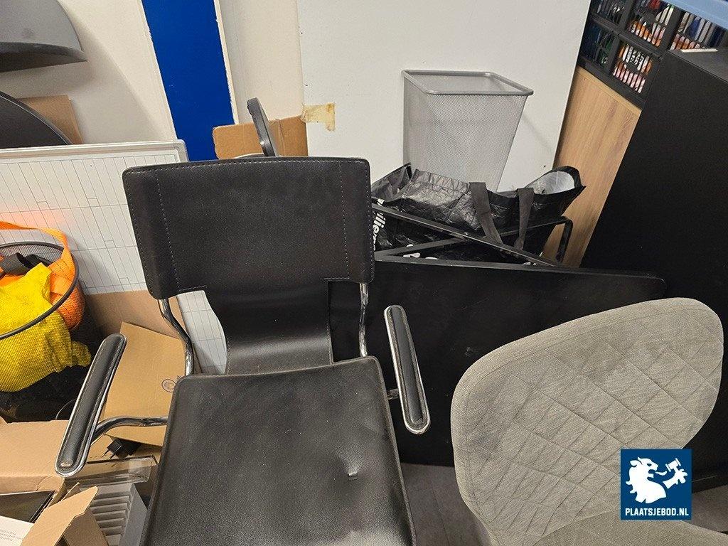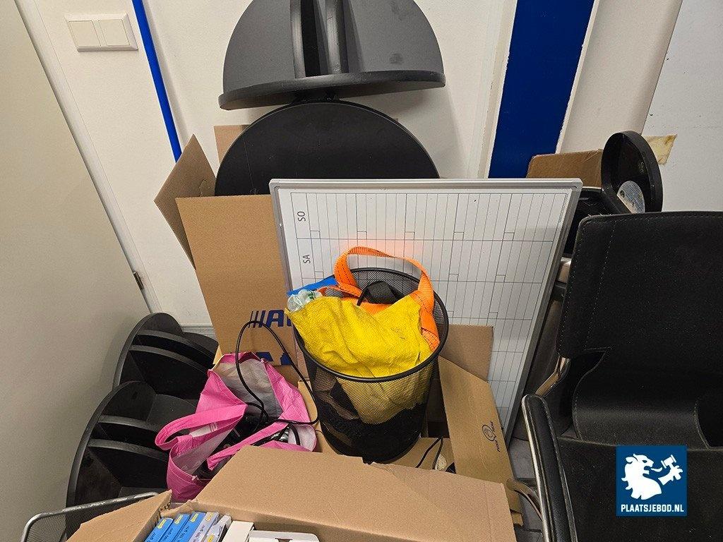 1 x Partij diverse kantoorgerief, meubels, etc. w.o. jalouziedeurkast, stoelen, stofzuiger, etc.