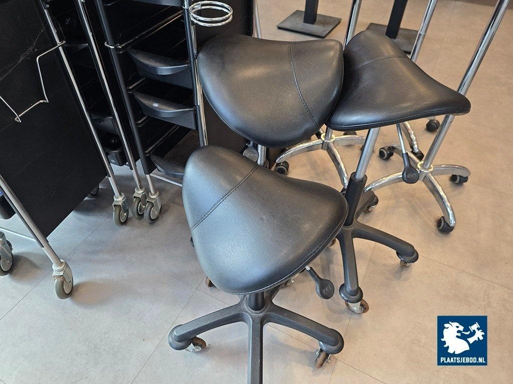 1 x Partij diverse kapperstrolley's en in hoogte verstelbare zadelkrukken