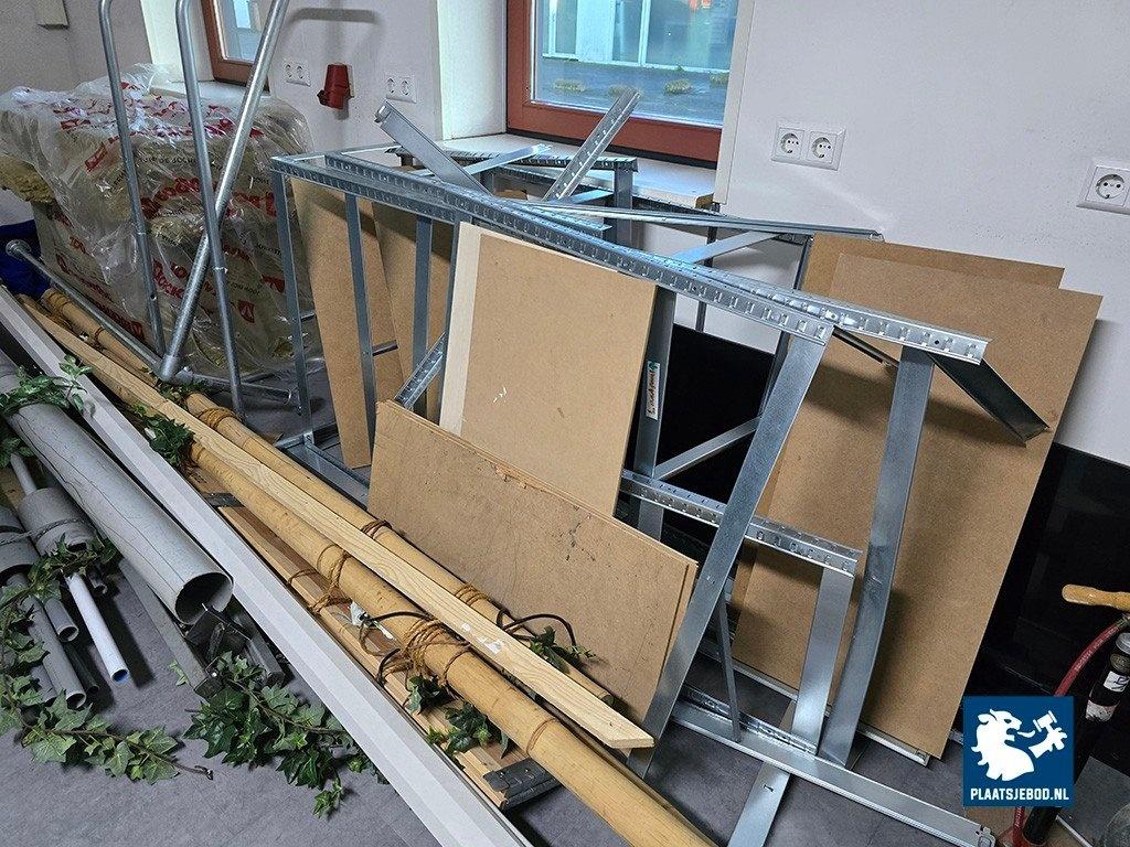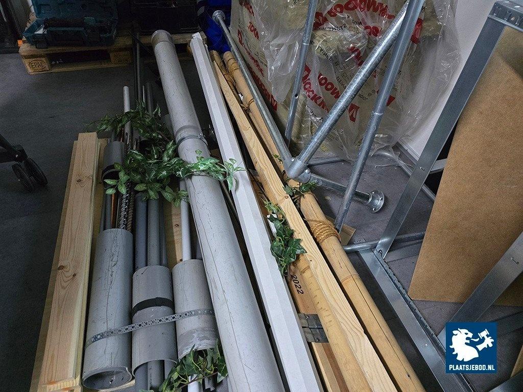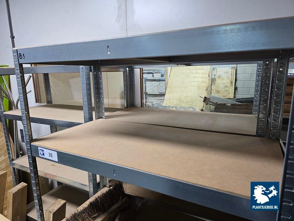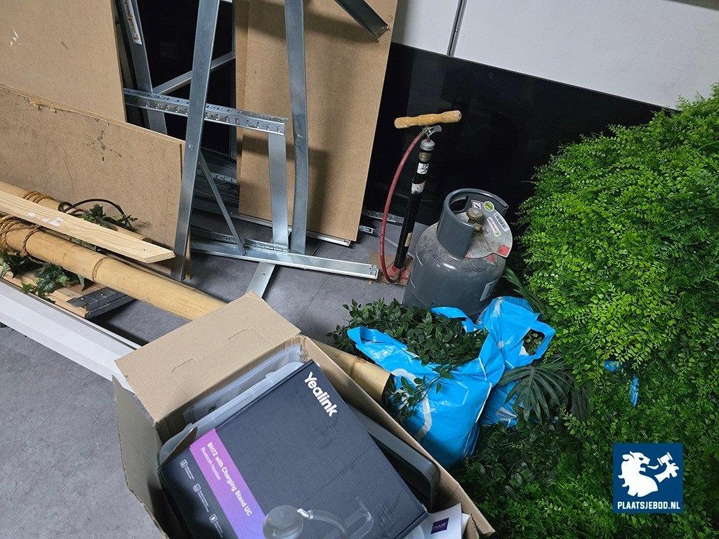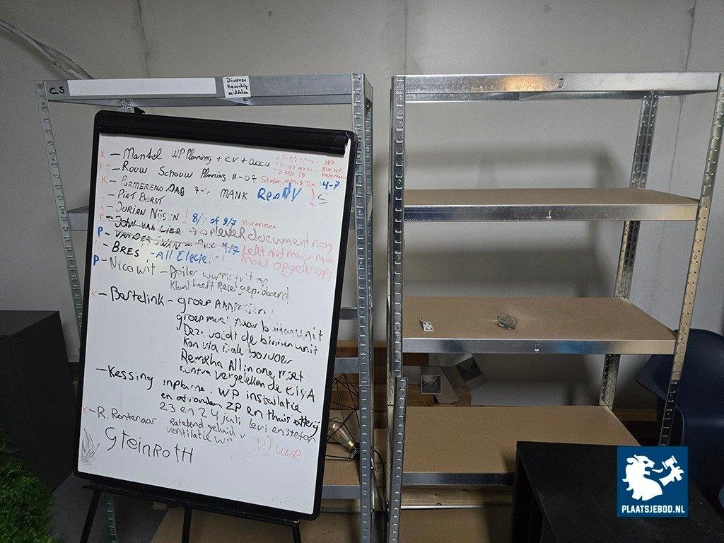 1 x Partij diverse materiaal w.o. kantoormeubilair, magazijnstellingen, diverse voorraad etc.
