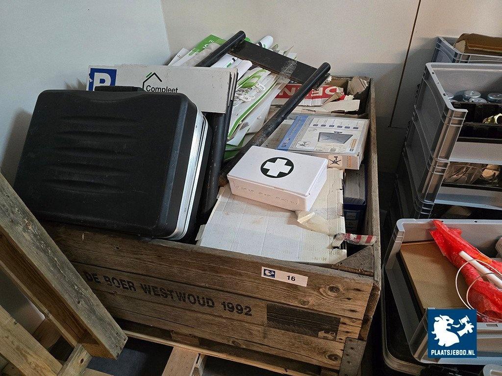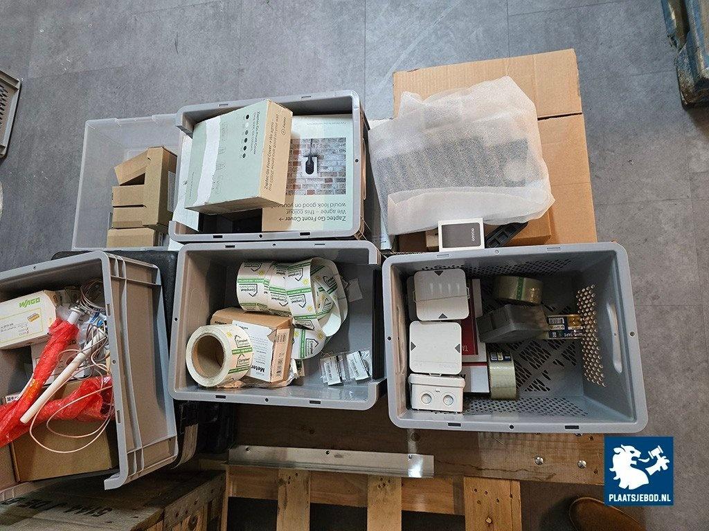 1 x Partij diverse materiaal op pallets w.o. gereedschapskoffers, elektrotechnisch materiaal etc.