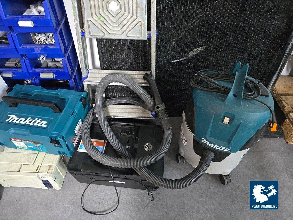 1 x Partij diverse onderdelen met grijpvoorraad bakken, assortimentskoffers, gereedschappen w.o. Makita en diverse materialen