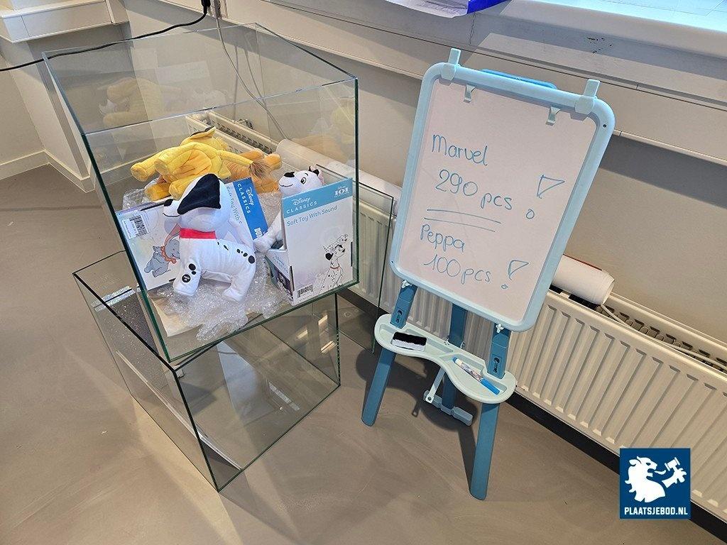 1 x Partij diverse speelgoed met openvakkenkast, display's, tafel met schragen, glazen vitrine's etc. (Koper dient alle zaken behorende bij dit kavel mee te nemen!)