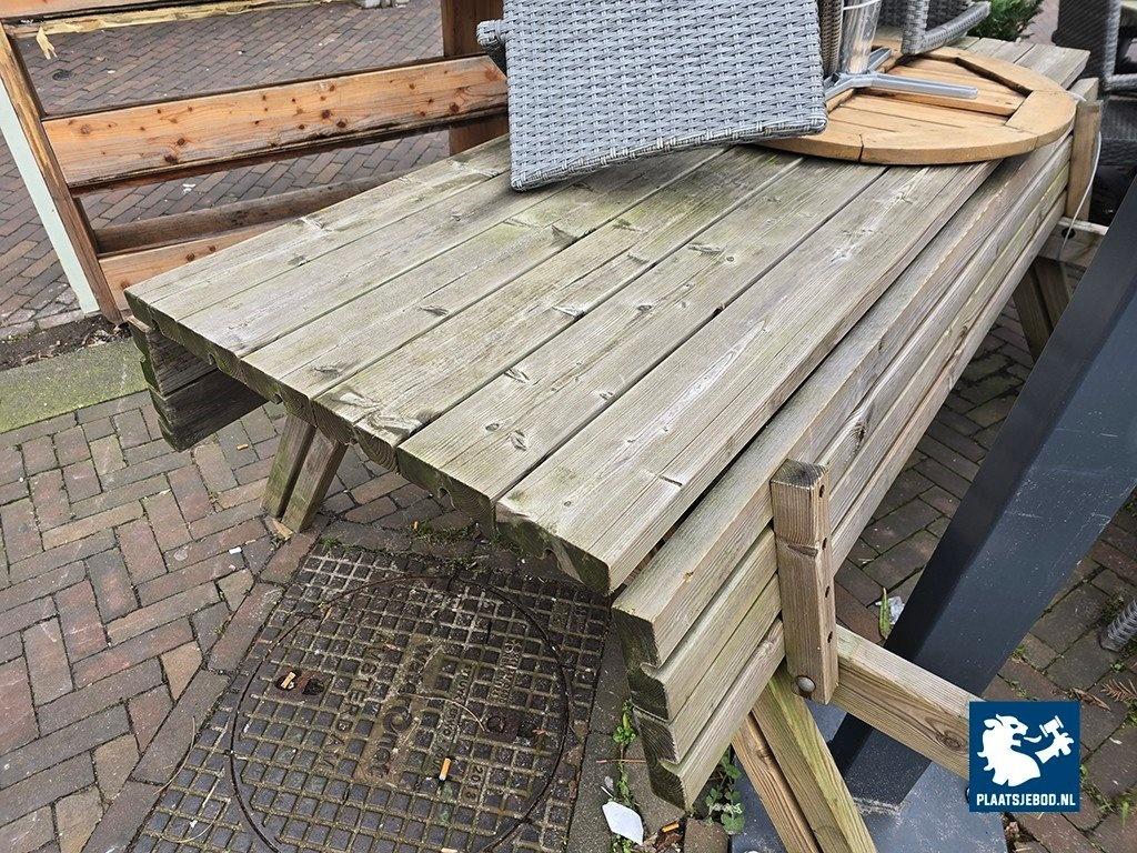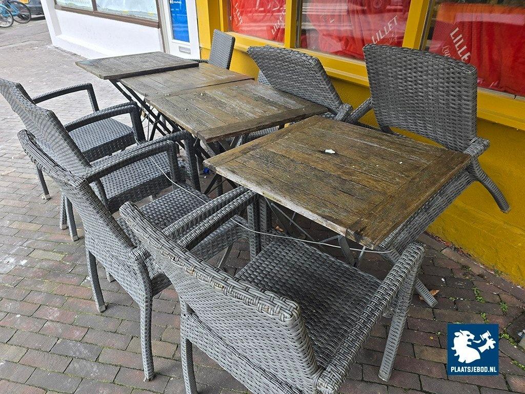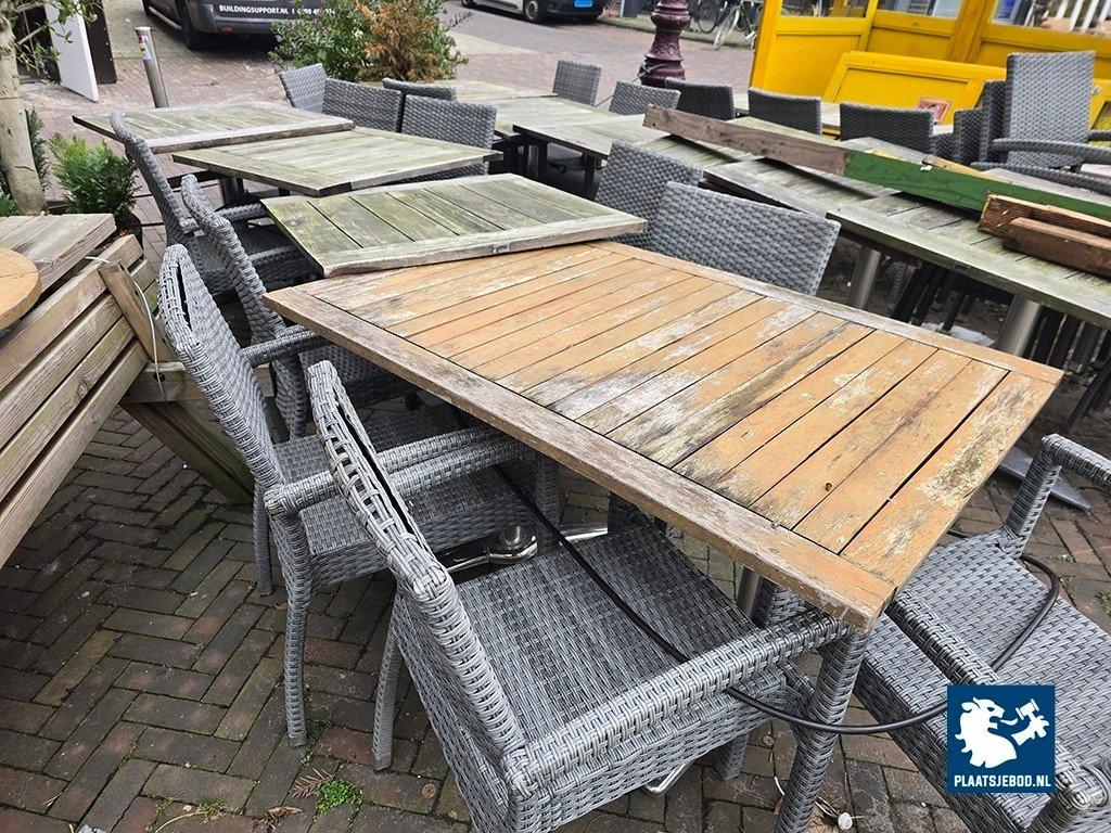 Kavel 312-046: 1 x Partij diverse tafels en Wicker stapelbare terrasstoelen