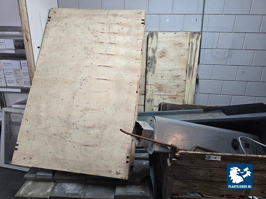 Kavel 282-009: 1 x Partij diverse w.o. oud ijzer, pallet met tegels en houtwerk