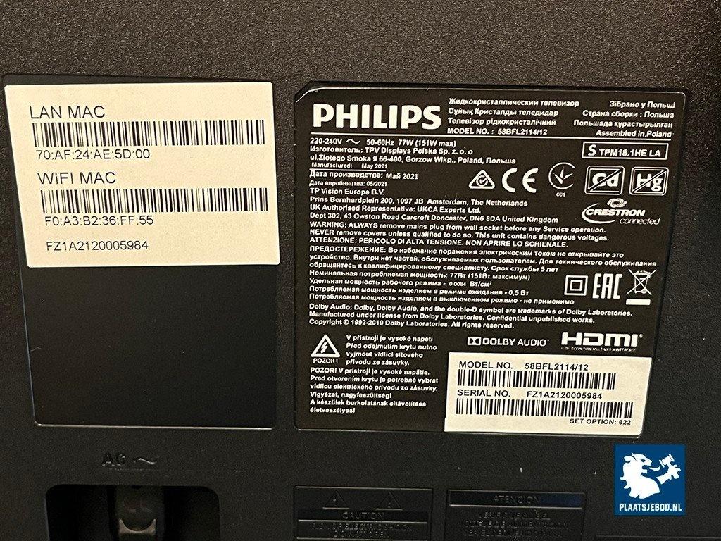 1 x Philips 58 inch flatscreen type 58BFL2114/12 met verrijdbare voet en afstandsbediening
