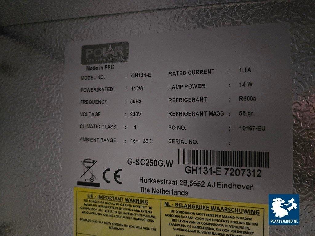1 x Polar 2-deurs beglaasde koelkast, onderbouw, model GH131-E