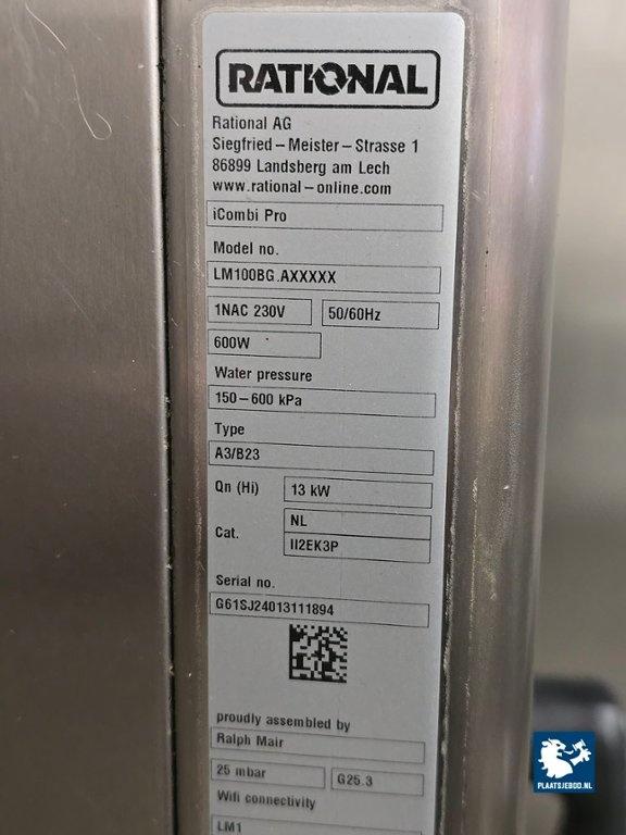 1 x Rational iCombi Pro Gas Combisteamer model LM 100BG, WiFi, zelfreinigend met onderkast. LET OP: koper dient zelf de waterleiding en gastoevoer kundig af te doppen.