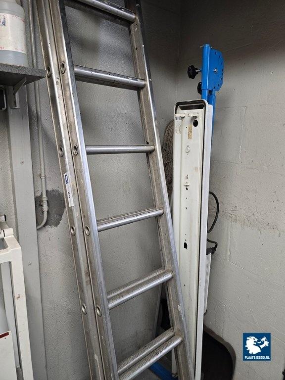 1 x RVS ladder 2 x 10 sporten met verrijdbare werkplaatsverlichting