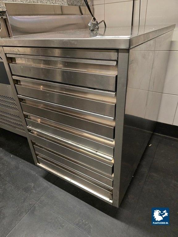 1 x RVS ladenkast, afm.: 58 x 80 x 83 cm.