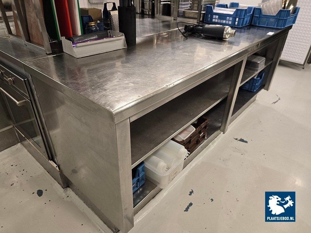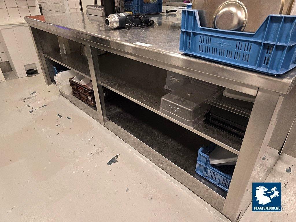 1 x RVS open werkbank, afm: 240 x 70 cm.