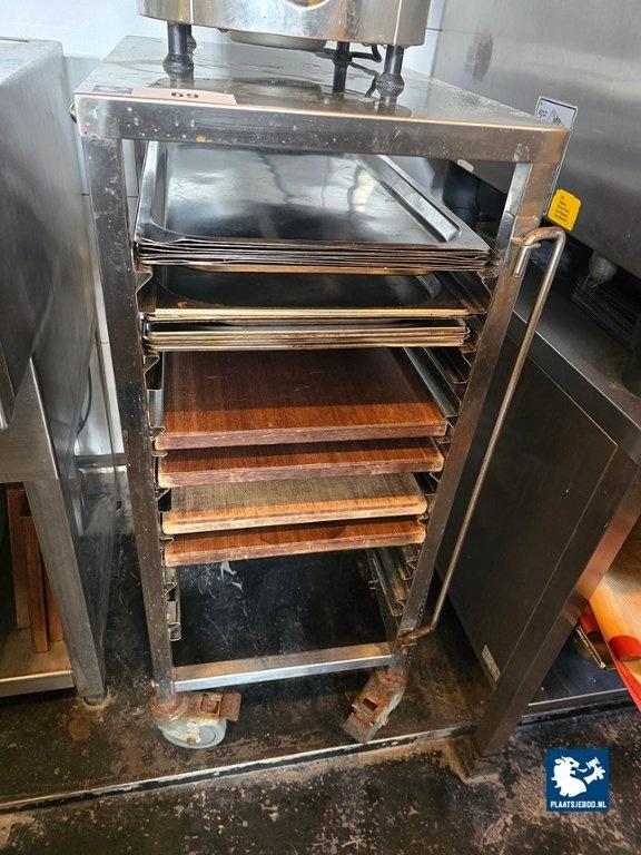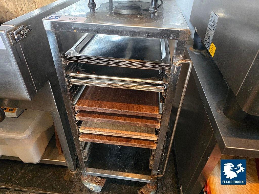 1 x RVS serveerwagen met dienbladen