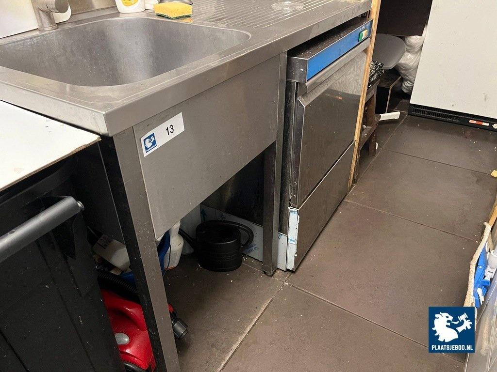 Kavel 283-013: 1 x RVS Spoelkeuken, met RVS wasbak met handdouche, RVS Mach industriële vaatwasser, inclusief accessoires