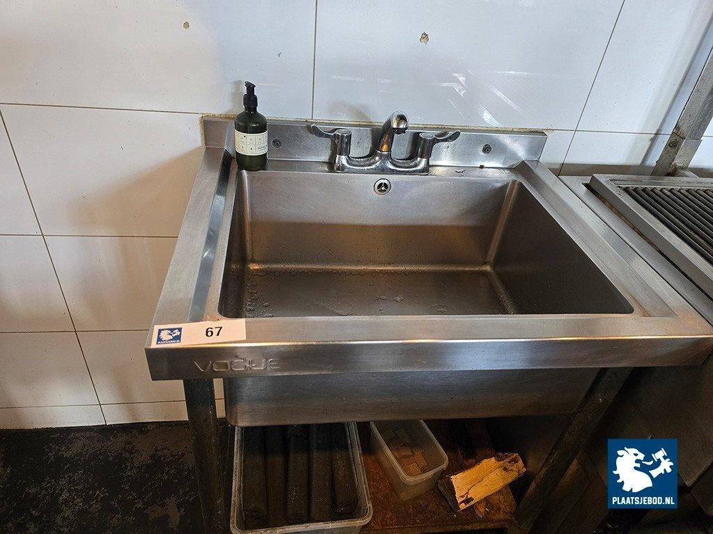 1 x RVS spoelmeubel ca. 75 cm breed met kraan. LET OP: koper dient zelf de waterleiding kundig af te doppen.