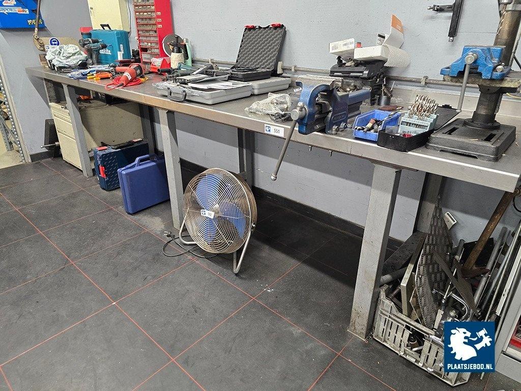 1 x RVS werkbank met stalen frame ca. 390 x 80 cm