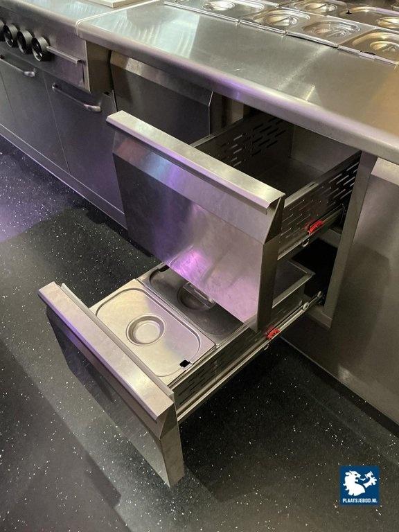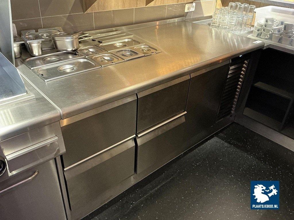 1 x Liebherr FRTS 7556 rvs gekoeld saladière meubel, bouwjaar 2023. Voorzien van 2x2 lades en 1 deur; Afmeting 1780x700x810 mm, 230v temperatuur bereik -2/+10 graden; temperatuur digitaal instelbaar, onderkoeling is geschikt voor GN-roosters.