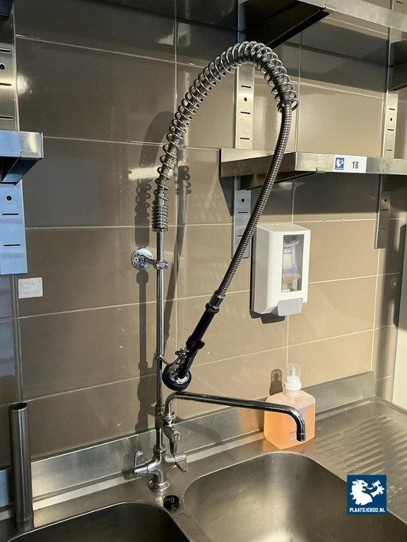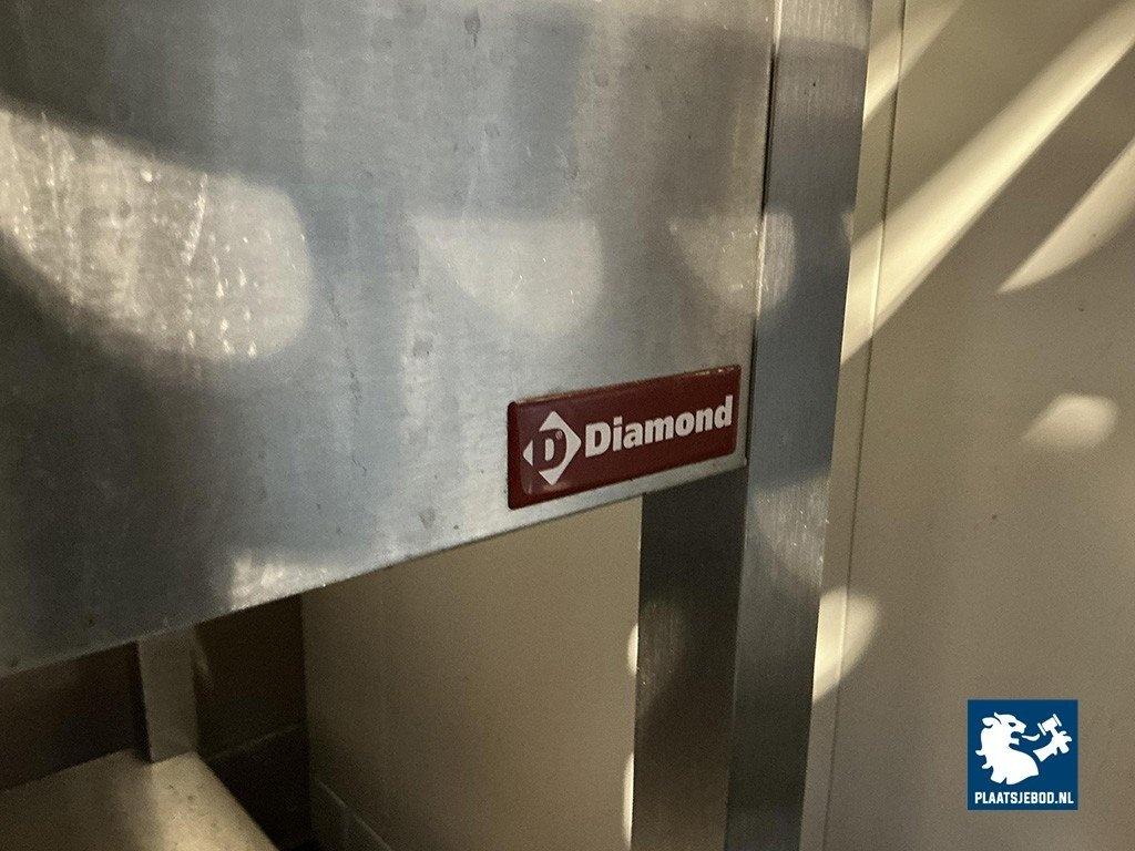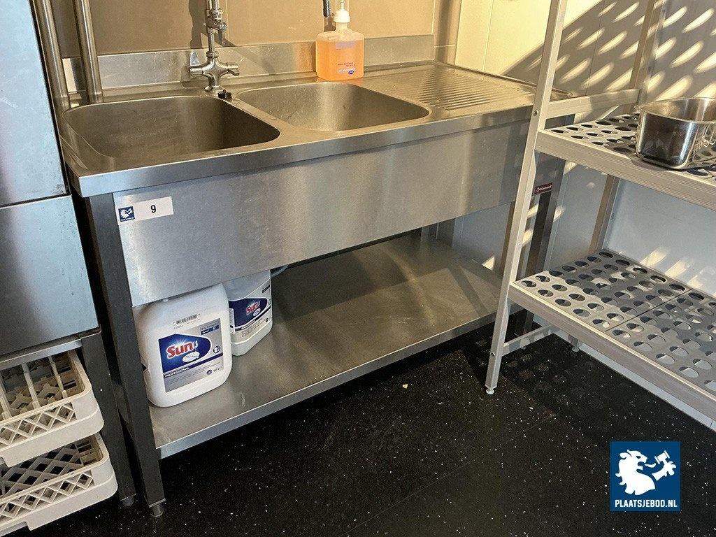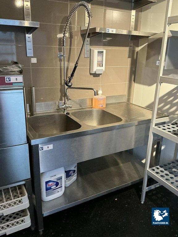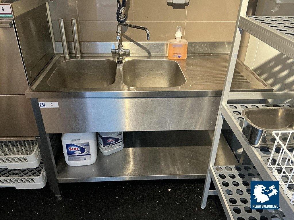 1 x Diamond roestvrijstalen spoeltafel voorzien van 2 spoelbakken, handdouche en onderschap. Afmeting 1400x700x900 mm