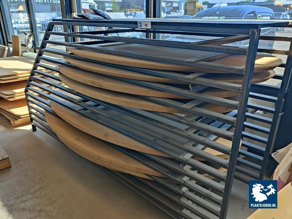 1 x Stalen rek met ca. 8 x ovale eikenhouten bladen