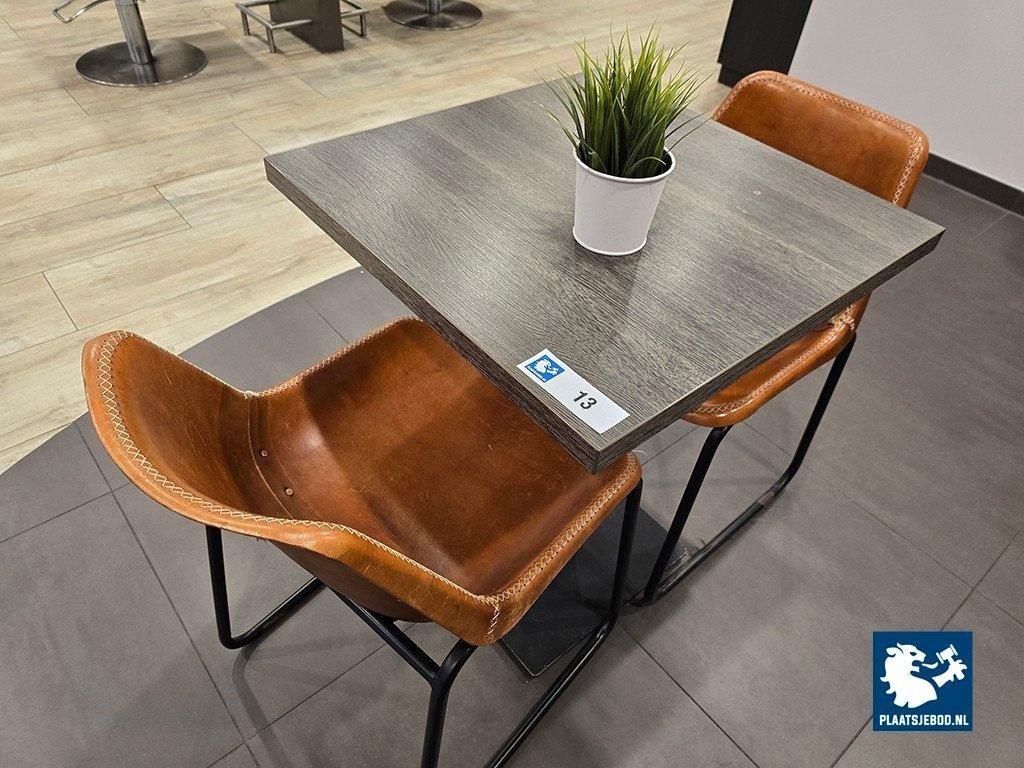 1 x Tafel ca. 60 x 60 cm met stalen kolom voet en 2 x kuipstoel met sledevoet
