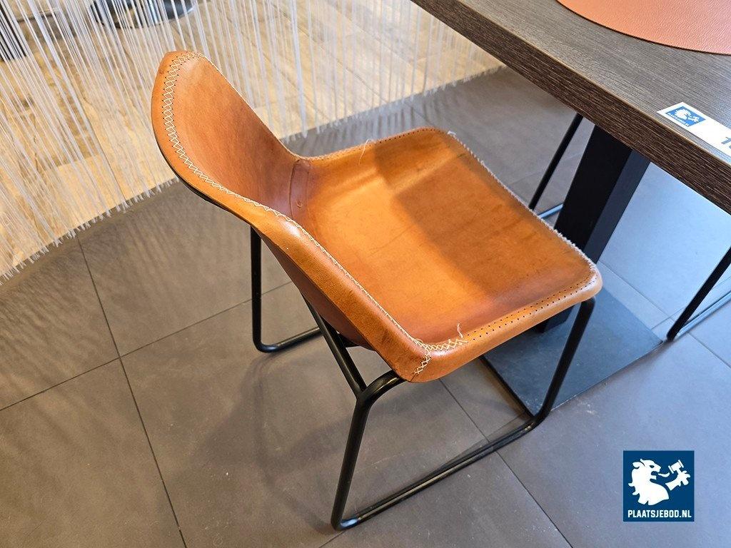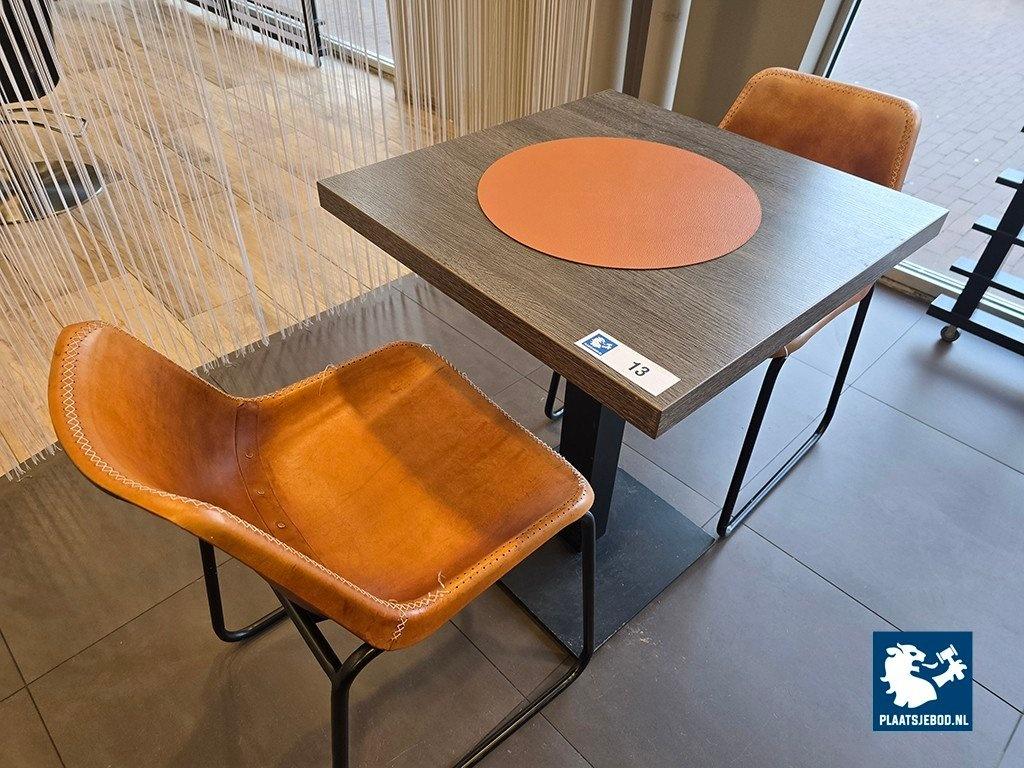 1 x Tafel ca. 60 x 60 cm met stalen kolom voet en 2 x kuipstoel met sledevoet
