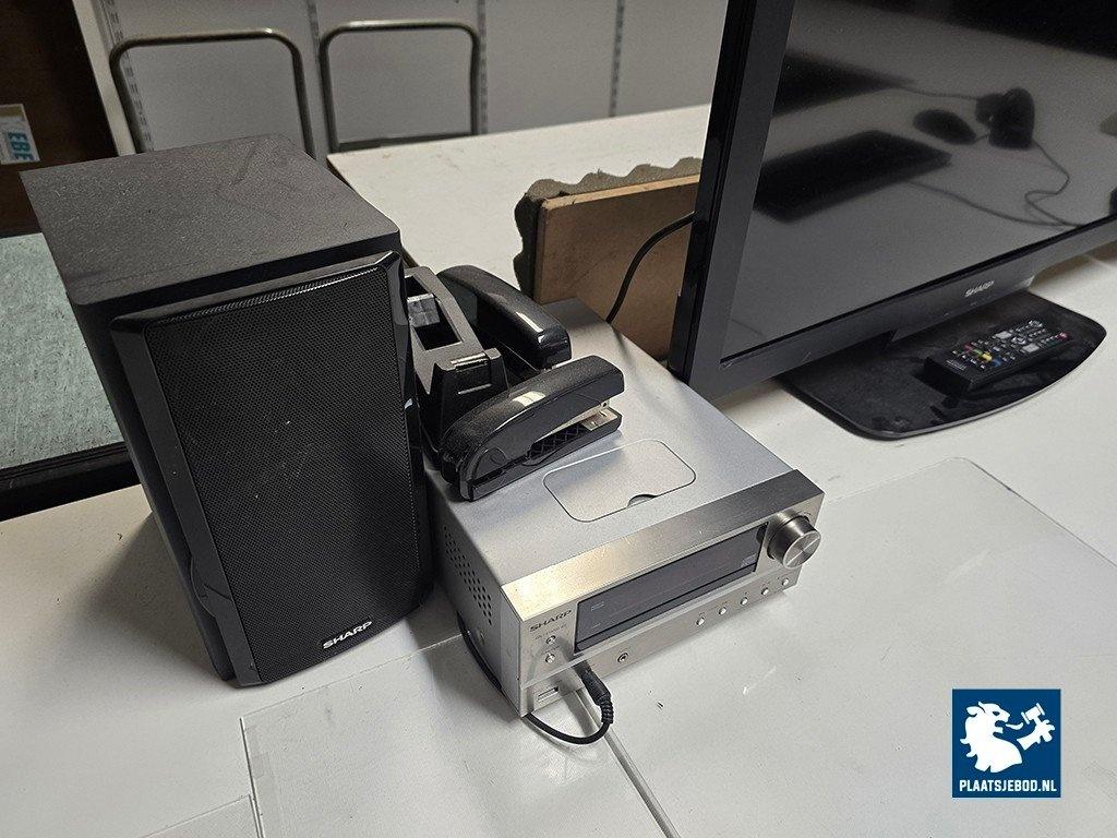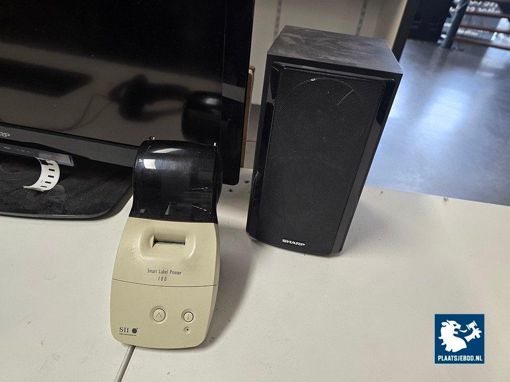 1 x Towermodel computer met 2 x Sharp monitoren, labelprinter, handscanner, etc.