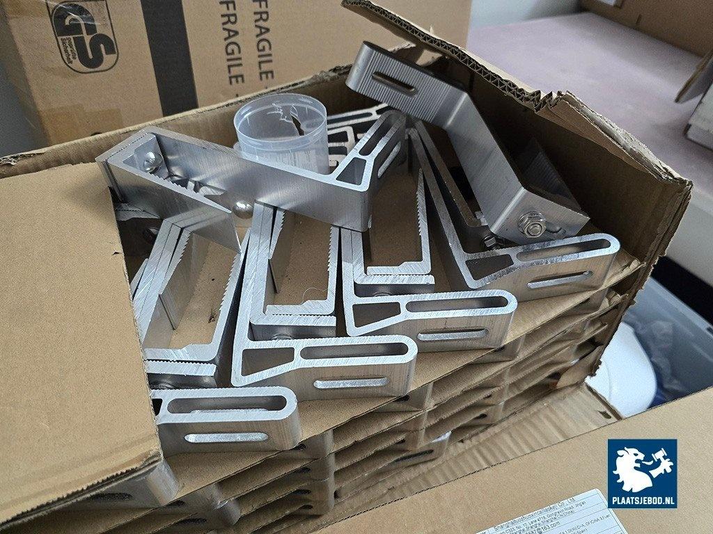 1 x Verrijdbare werkbank met diverse materiaal w.o. 2 x SMA Omvormer, leidingwerk, aluminium dakbeugels etc.