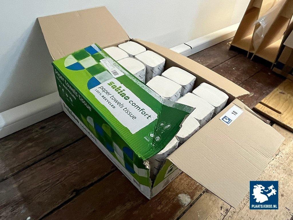 Kavel 298-018: 1 x Voorraaddoos met tissues, circa 28 pakken