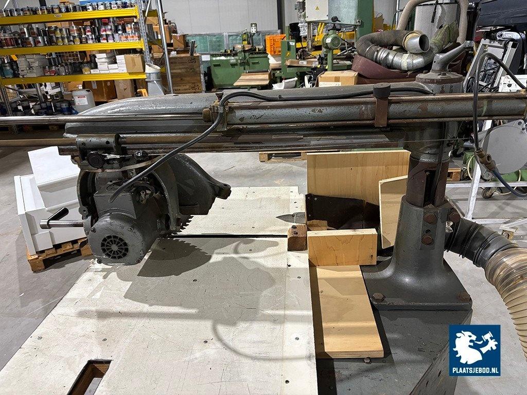 1 x Wadkin radiaalafkortcirkelzaagmachine 380v met afzuigslang, 160cm hoog 140cm breed 110cm diep