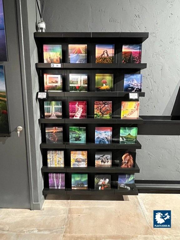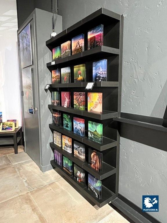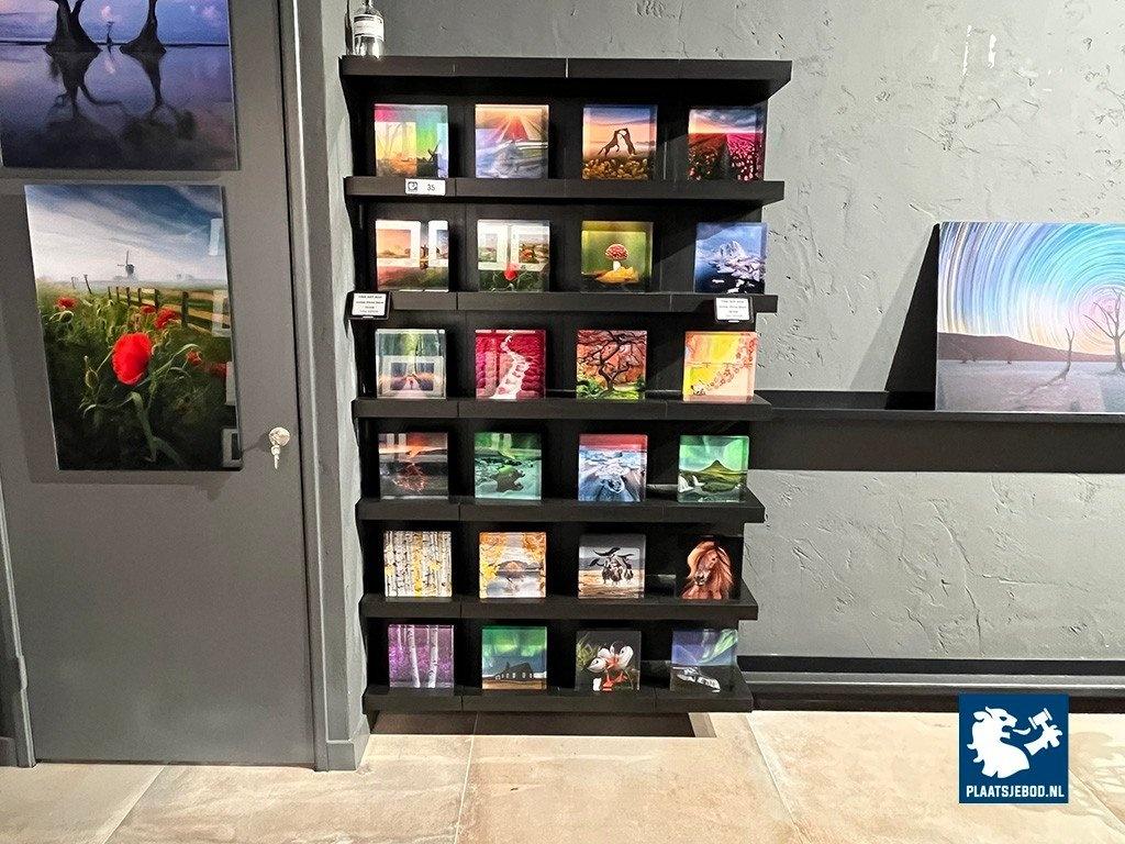 1 x Wandkast, 4 secties zeven planken, 30 cm per sectie, hoogte 200 cm, 1 x salontafel, kleur zwart, formaat 90 x 55 x 45 cm. Wandkast zonder inhoud. Tafel zonder standaards en prints.