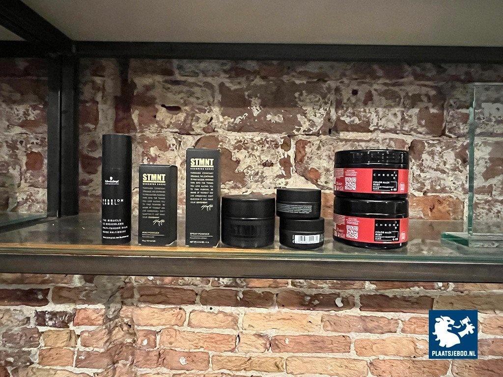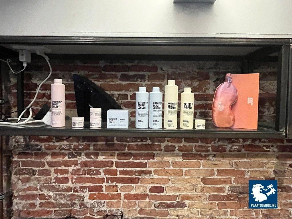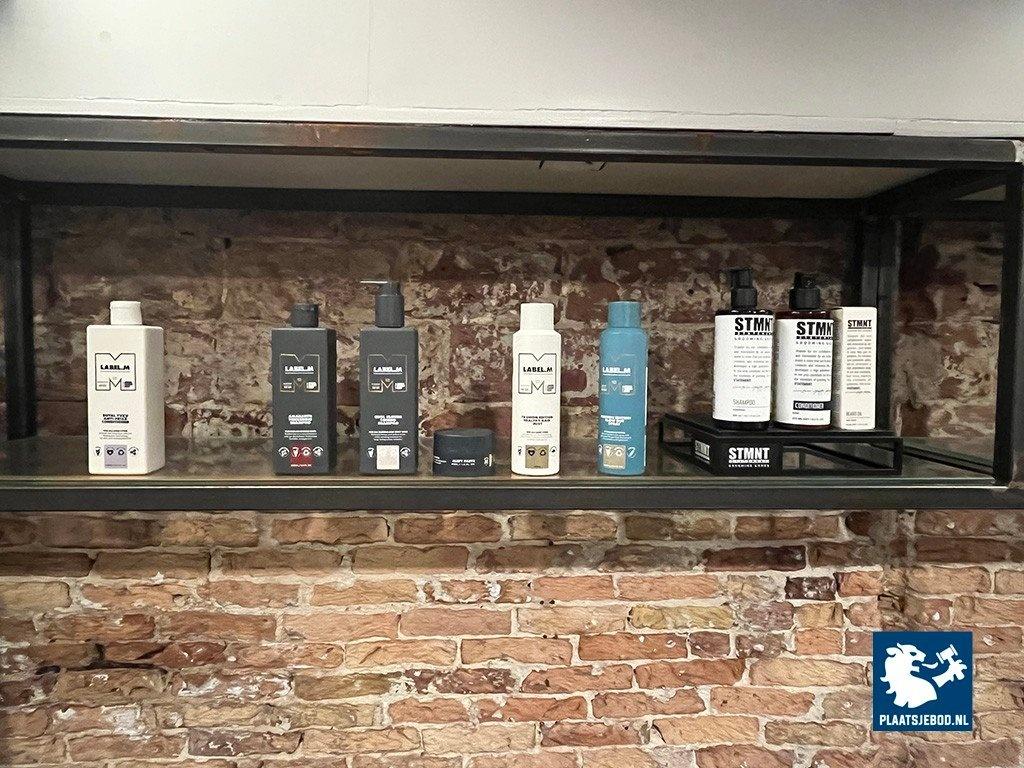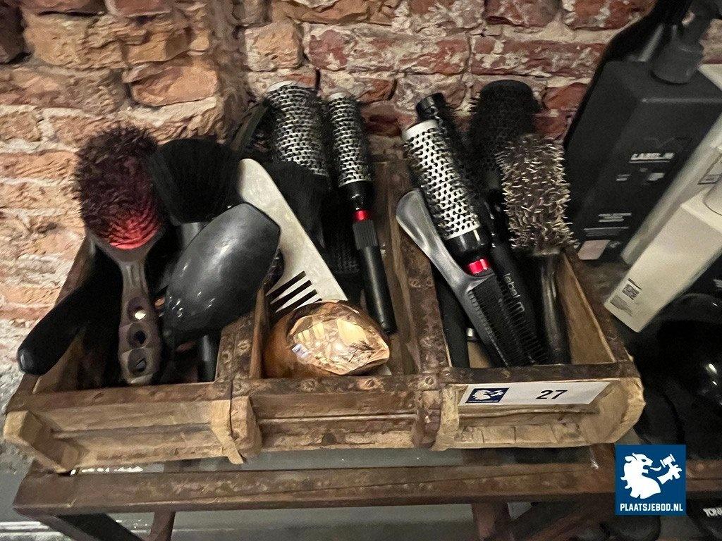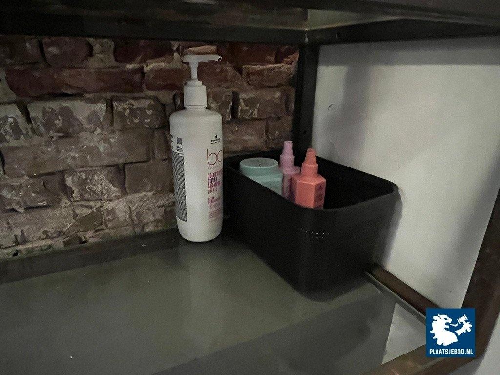 1 x Wandkast met voorraad shampoo, gel, diverse föhns, etc