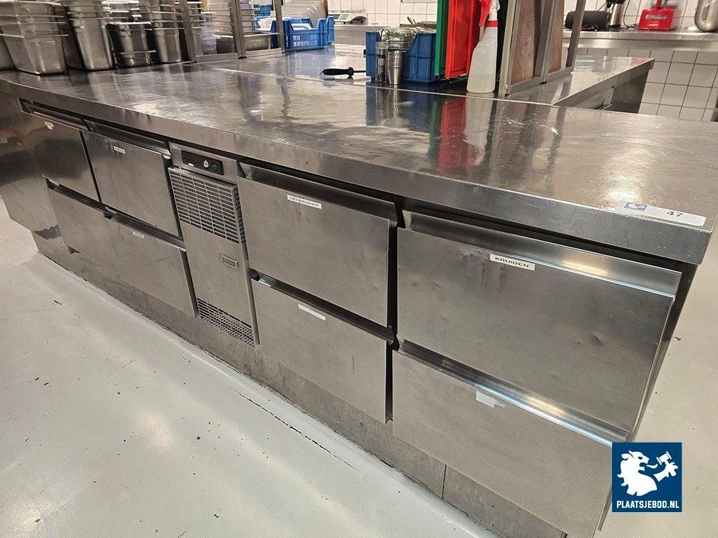 Kavel 292-047: 1 x Zanussi RVS koelwerkbank met 8 laden, afm: 225 x 70 cm.