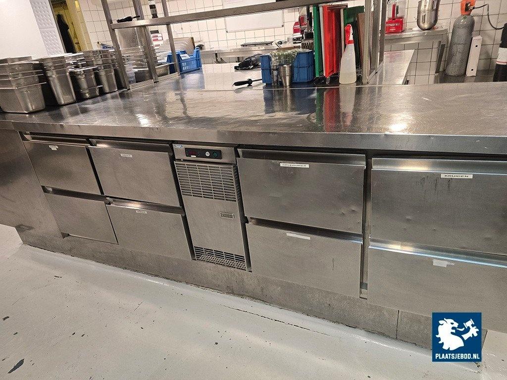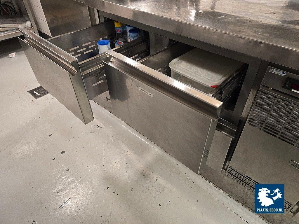 1 x Zanussi RVS koelwerkbank met 8 laden, afm: 225 x 70 cm.