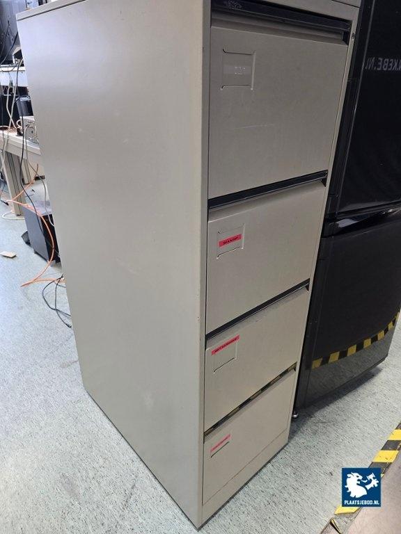 1 x Archiefkast waarvan 1 x met dubbele deur ca. 400 x 48 x 198 cm en 1 x met 4 x lade met diverse inhoud