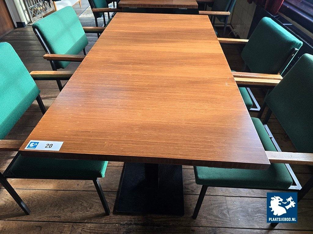 Kavel 318-020: 2 x Bamboo houten tafel met stalen kolomvoet