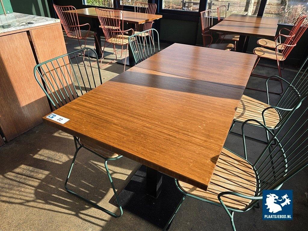 Kavel 318-022: 2 x Bamboo houten tafel met stalen kolomvoet