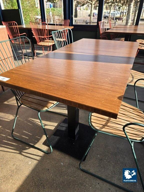2 x Bamboo houten tafel ca. 75 x 75 cm met stalen kolomvoet voorzien van koppelbare sluitingen