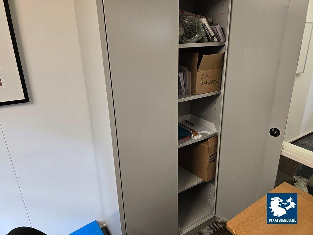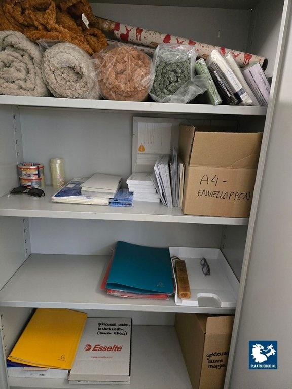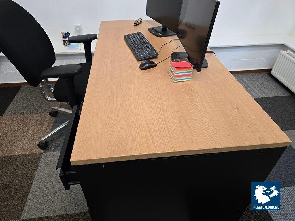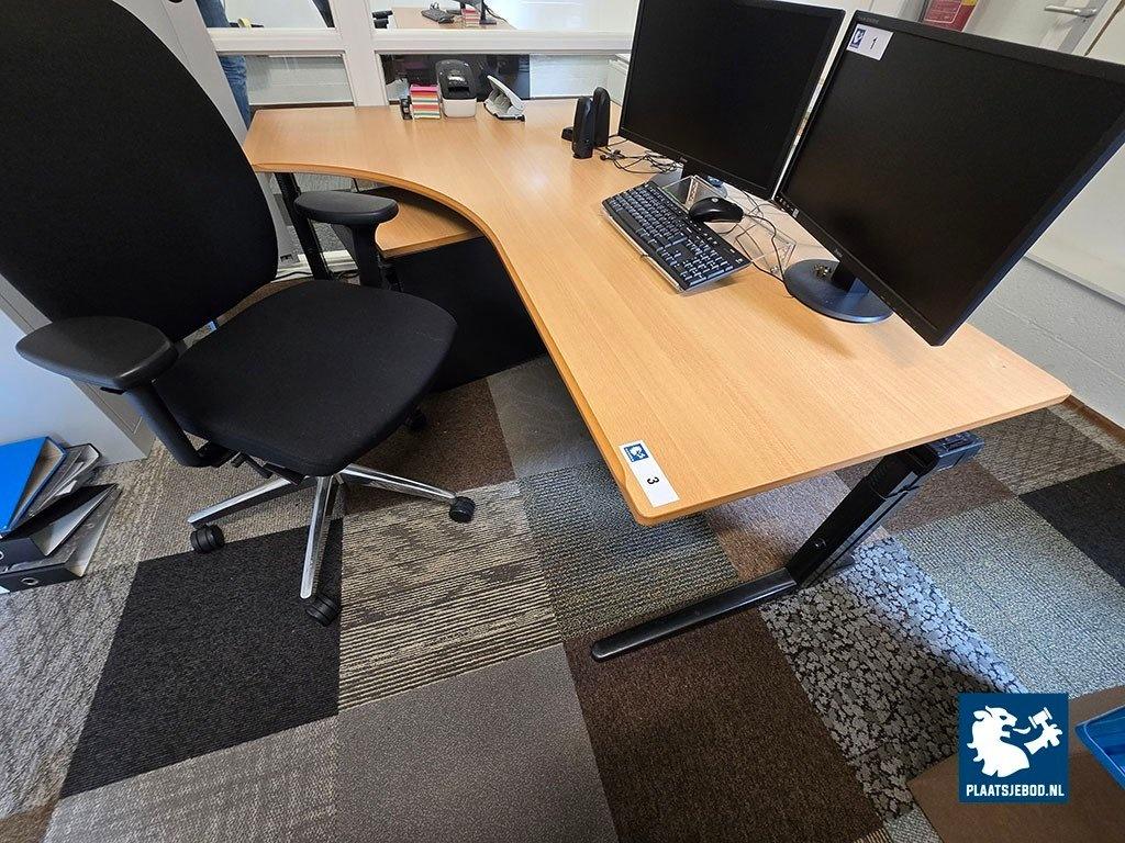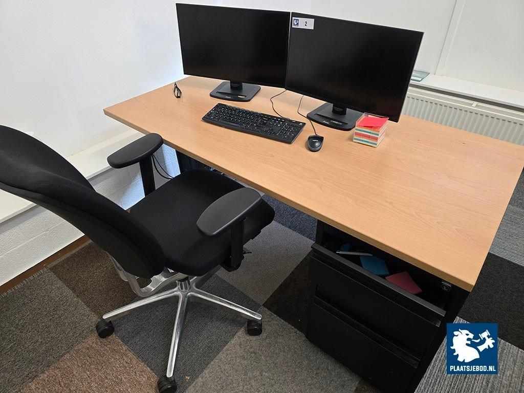 2 x Bureauopstelling met bureaustoel (ca. 200 x 138 cm en ca. 160 x 80 cm), 2 x ladenblok waarvan 1 x verrijdbaar en archiefkast ca. 92 x 42 x 195 cm met diverse inhoud