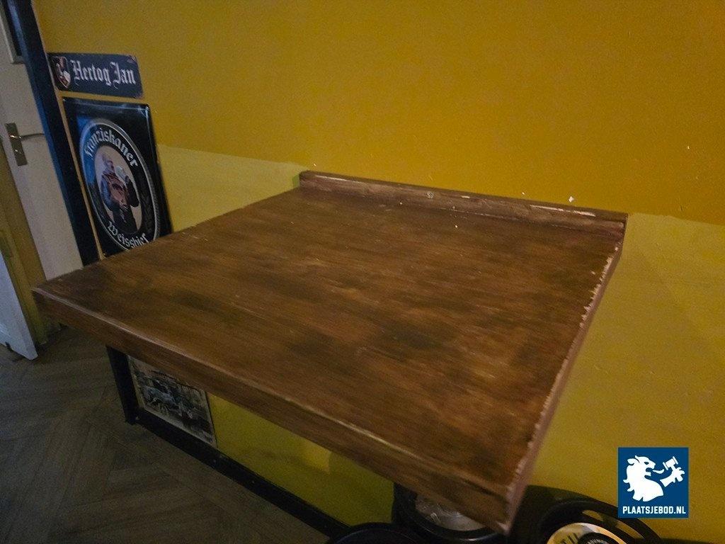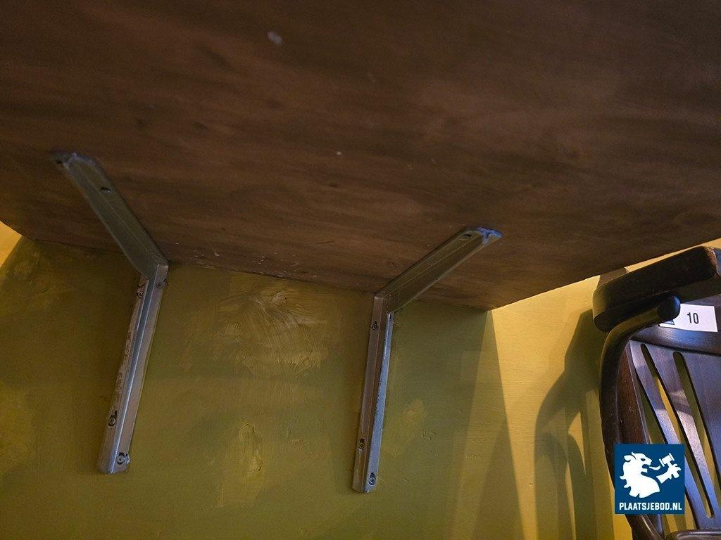 2 x Houten wandtafel ca. 60 x 55 cm met 2 x houten barkruk