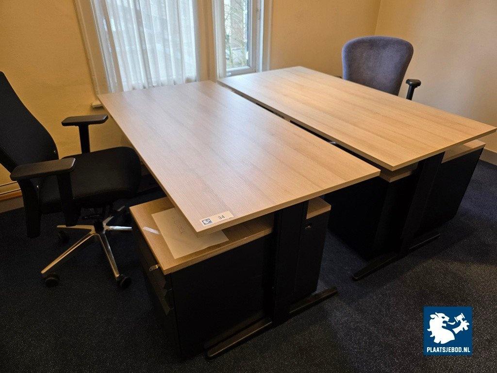 Kavel 300-034: 2 x In hoogte verstelbaar bureau met bureaustoel en ladeblok