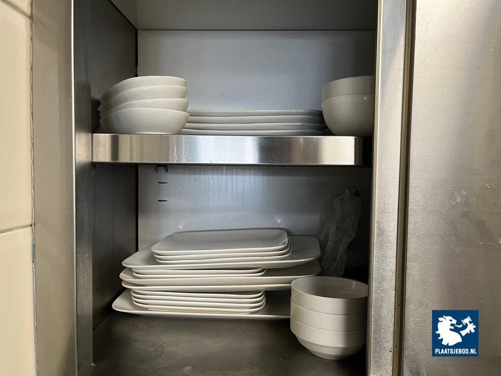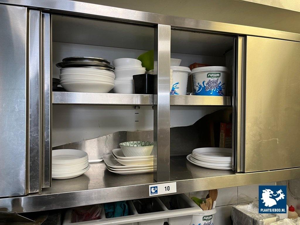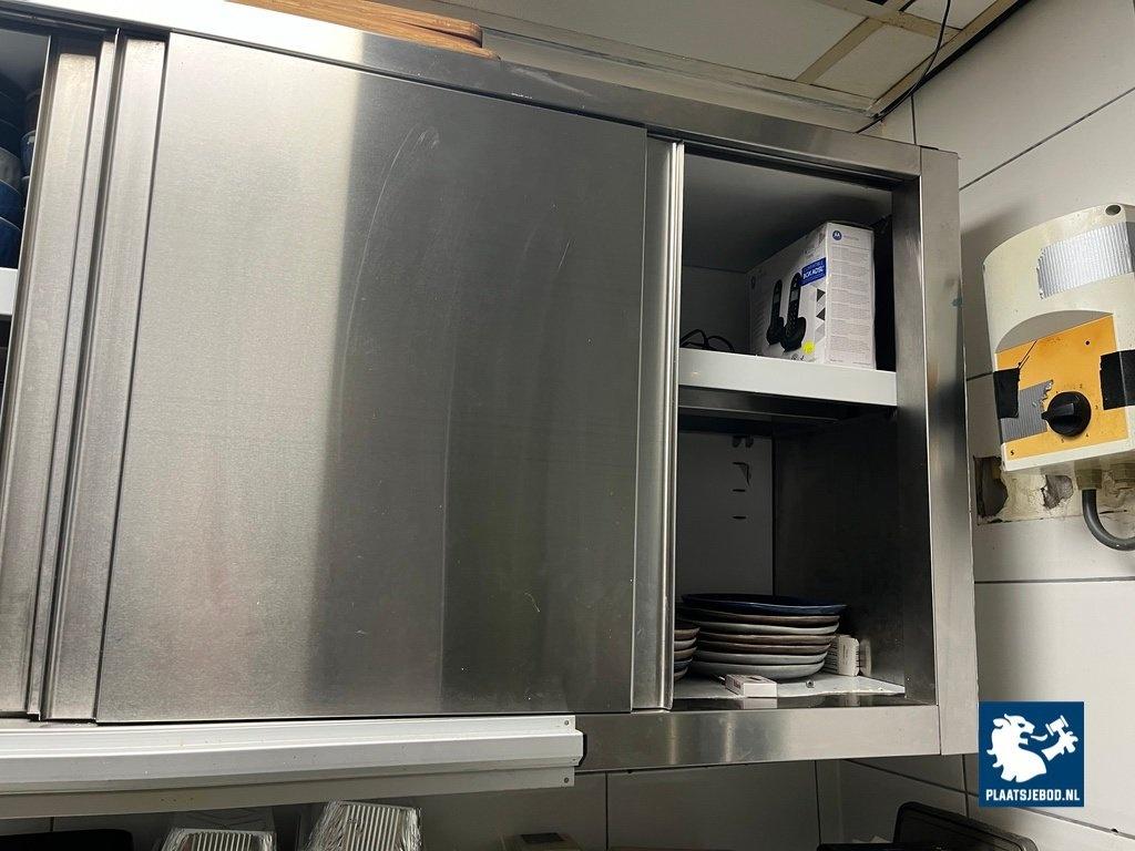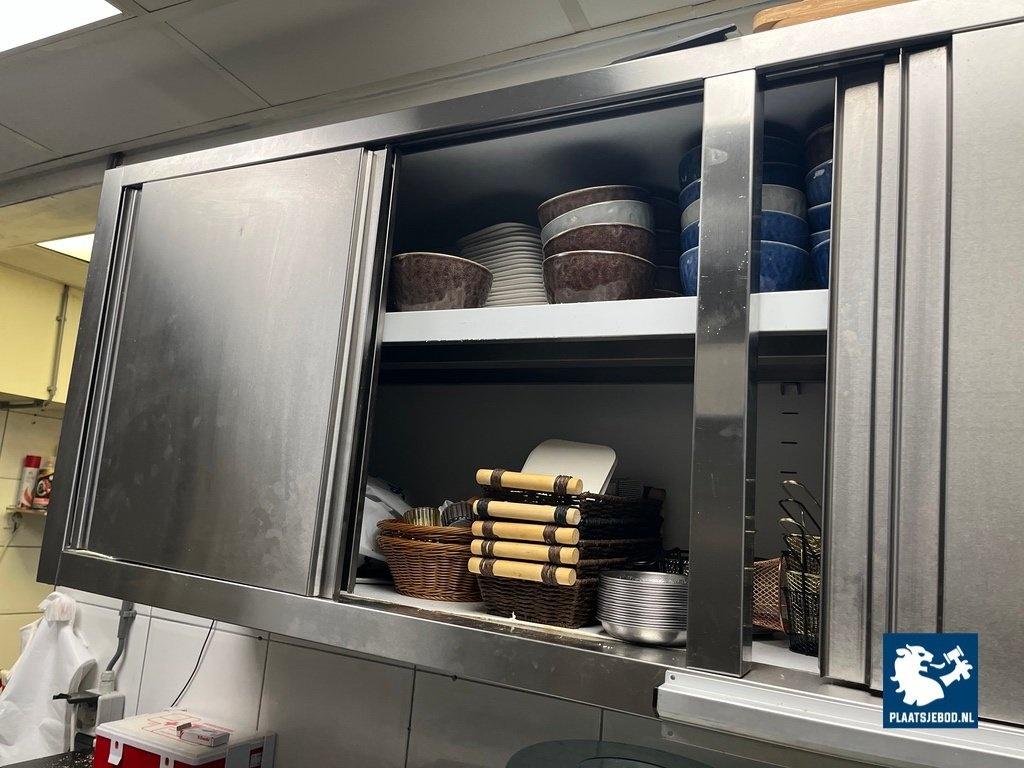 2 x RVS wandkast, 4 schuifdeuren, ca. 200 x 75 cm, incl inhoud