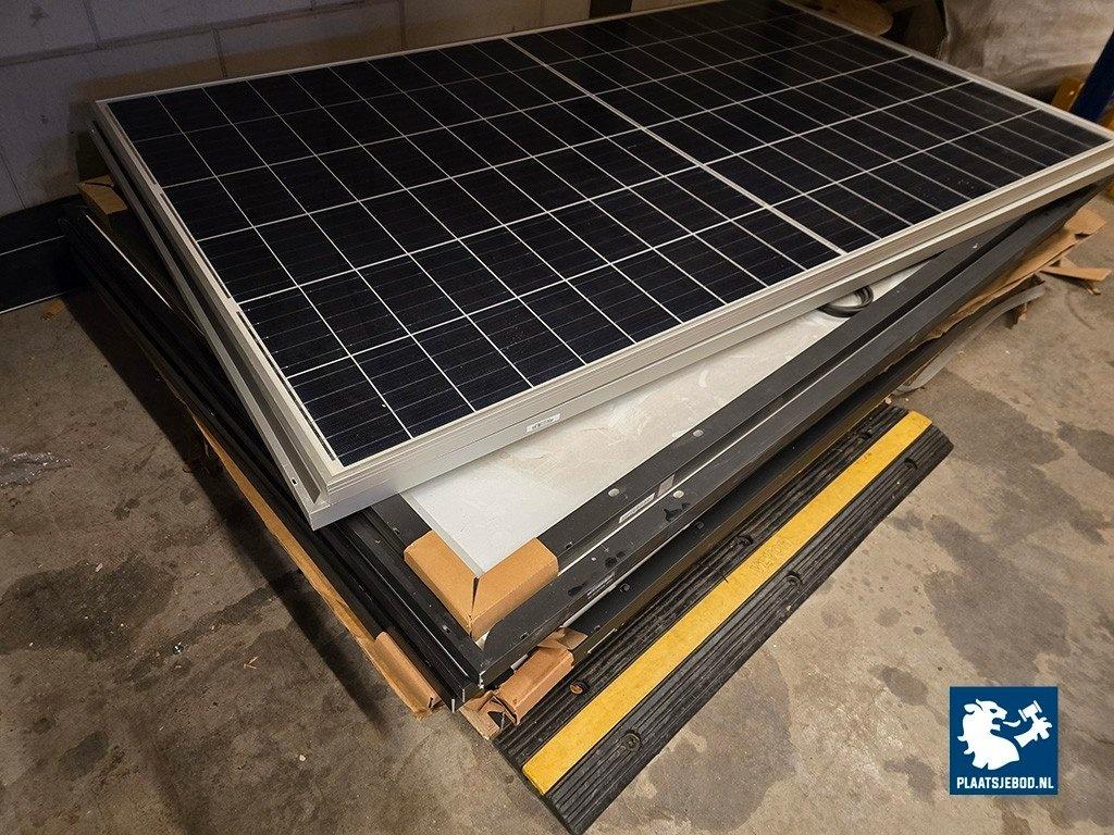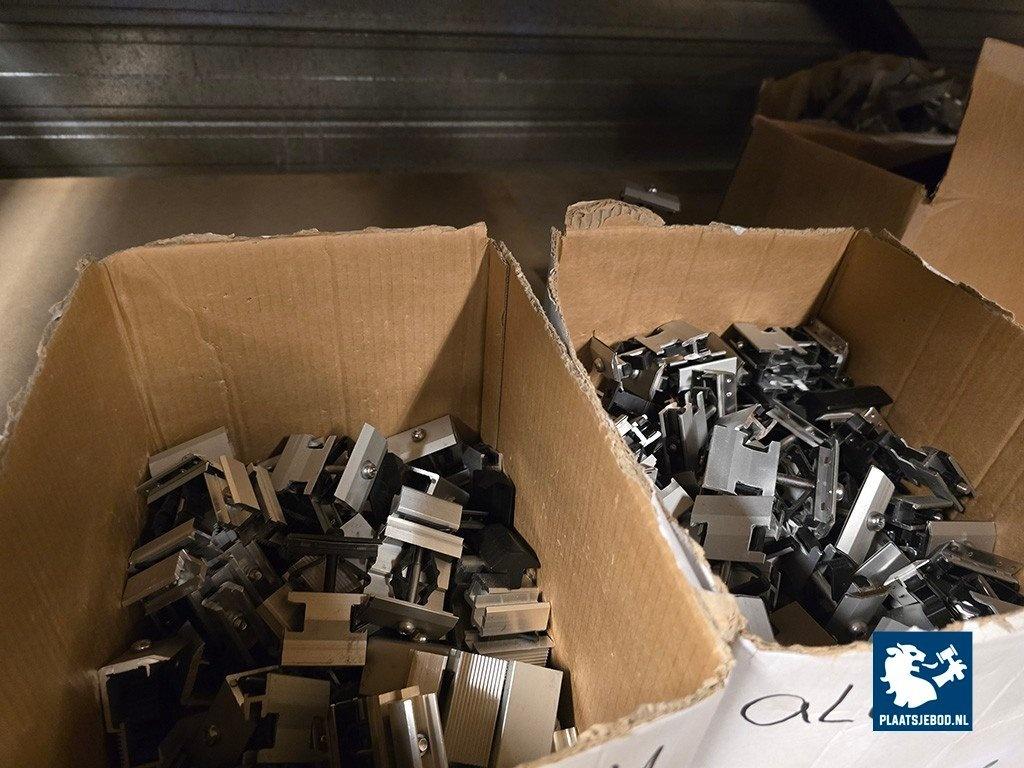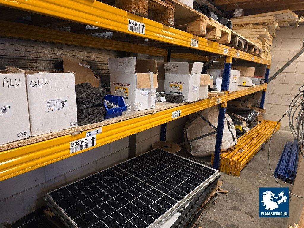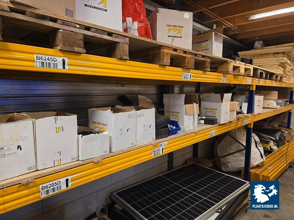 2 x Sectie palletinhaakstelling ca. 375 x 110 x 200 cm met diverse inhoud waaronder materiaal t.b.v. zonnepanelen montage, ca. 9 panelen en extra liggers