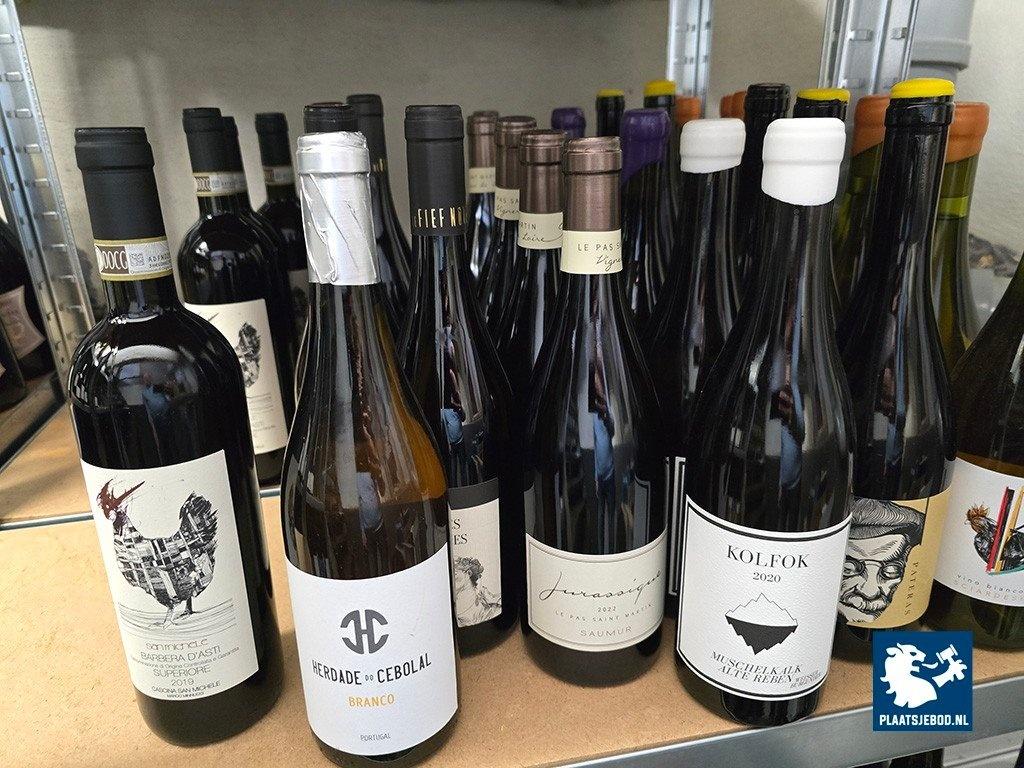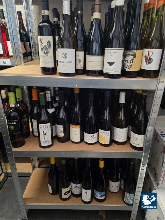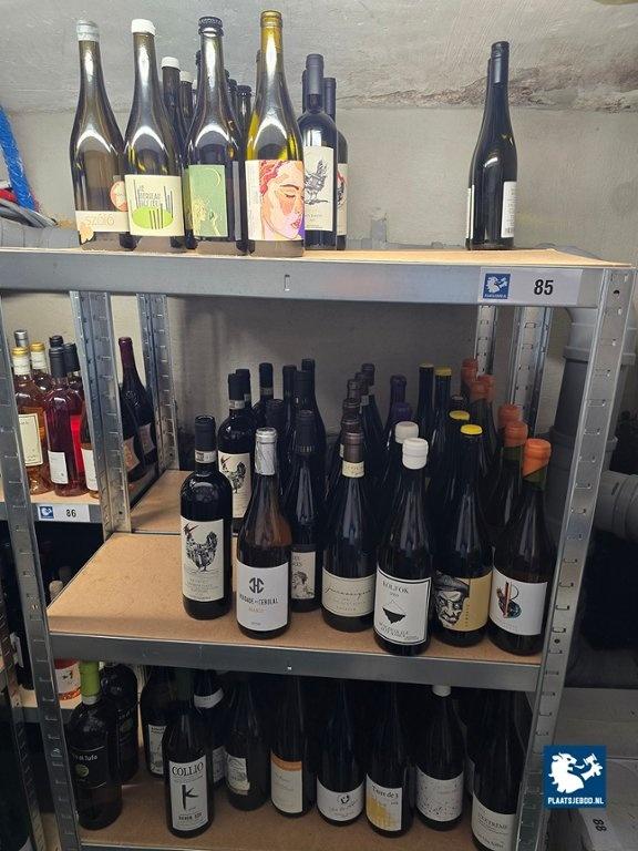 2 x Sectie wandstelling met ca. 115 flessen diverse rode- en witte wijnen