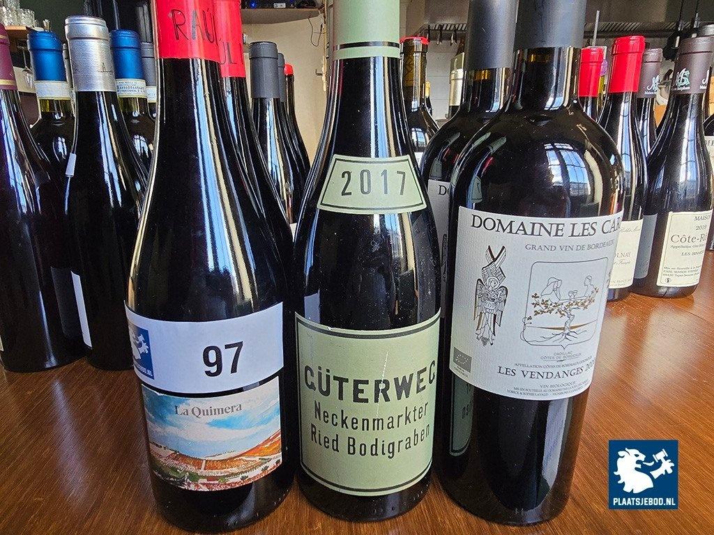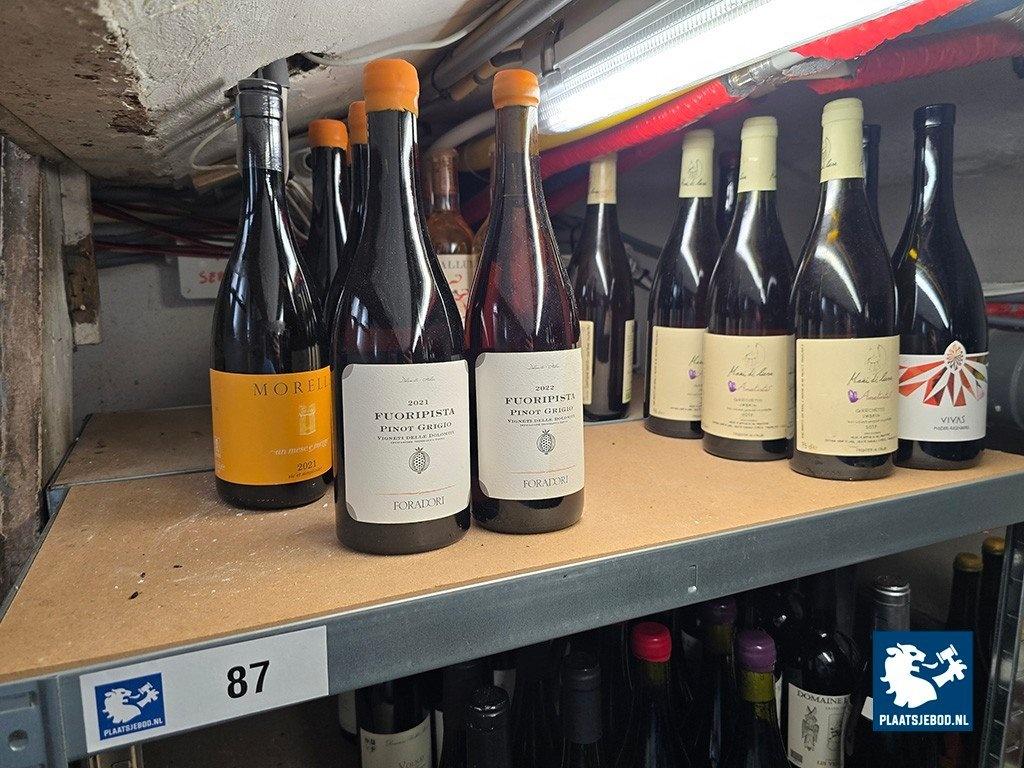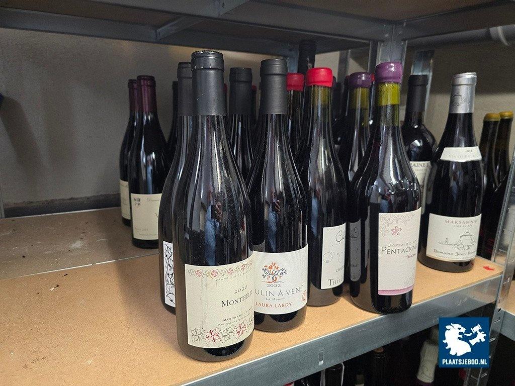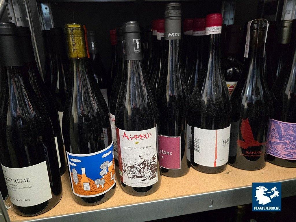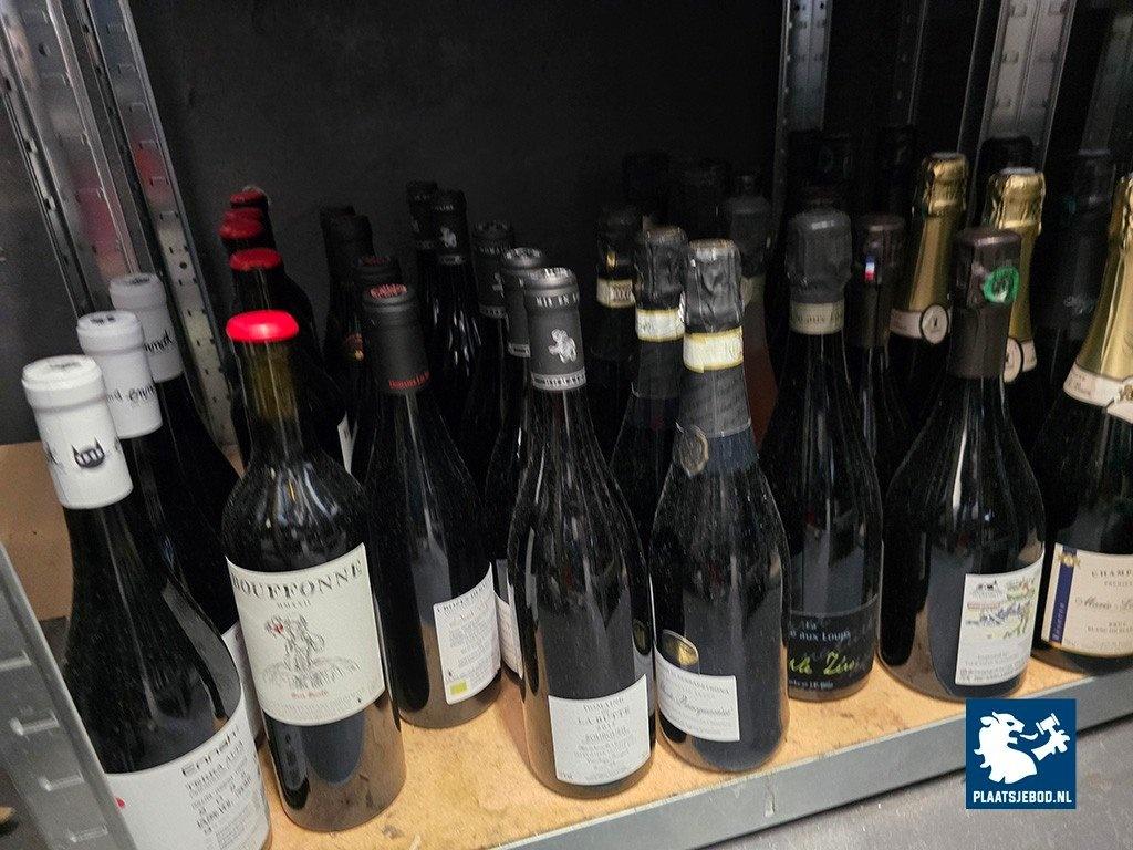 2 x Sectie wandstelling met ca. 130 flessen diverse rode- en witte wijnen
