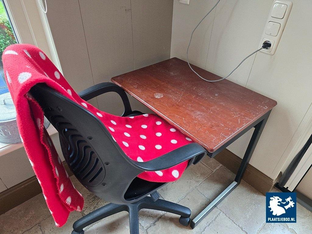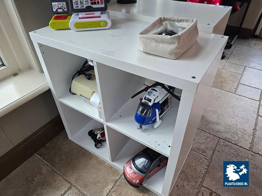 2 x Vakkenkast ca. 79 x 39 x 79 met inhoud, lessenaar, stoel, wandspiegel, etc.