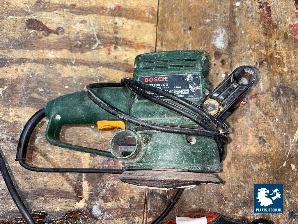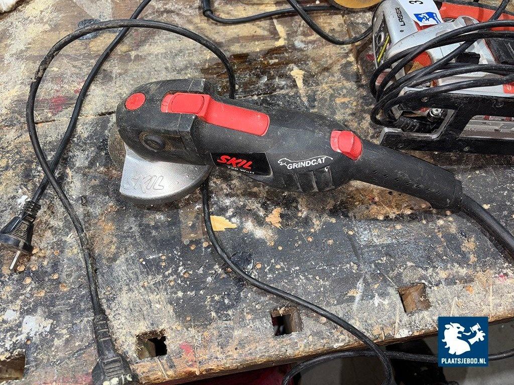 3 x Diverse soorten elektrische handgereedschappen waaronder een Laser pendeldecoupeerzaag, Bosch schuurmachine en Skil haakse slijper