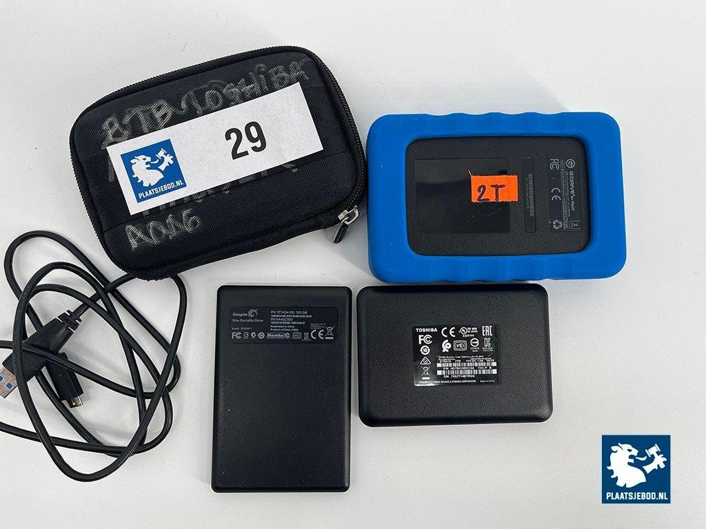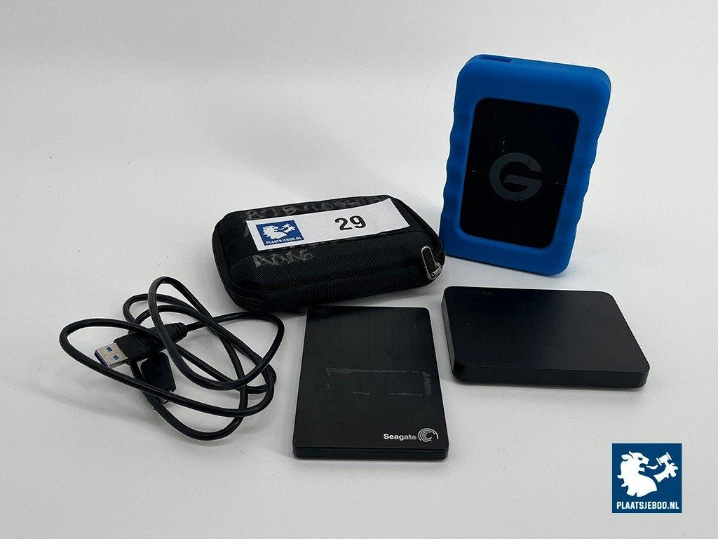 3 x Diverse soorten externe HDD waaronder 1 x G|Drive 2 TB, 1 x Seagate 500 GB en 1 x Toshiba 2 TB