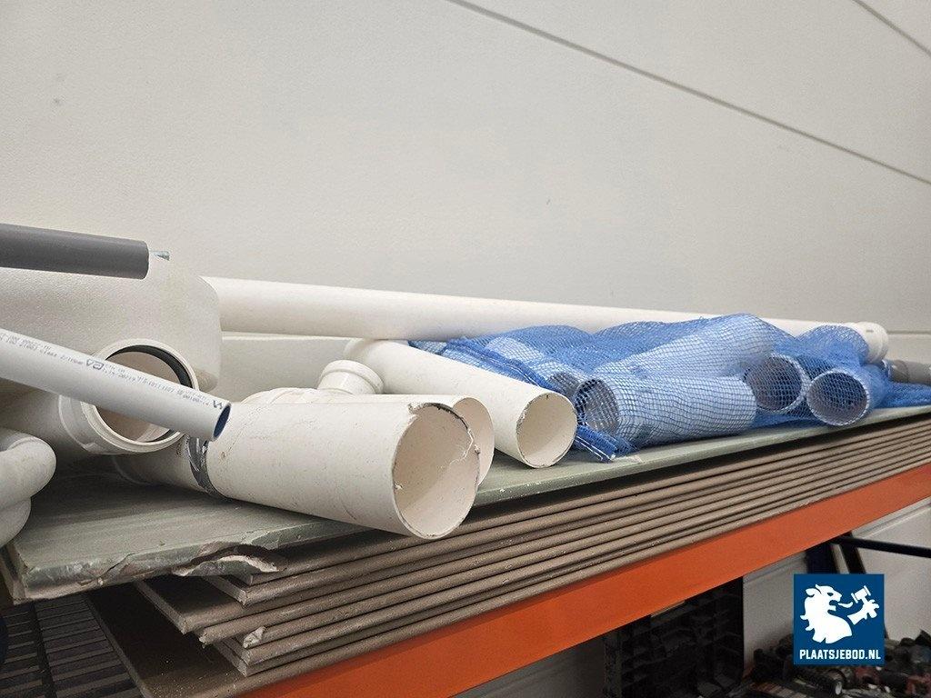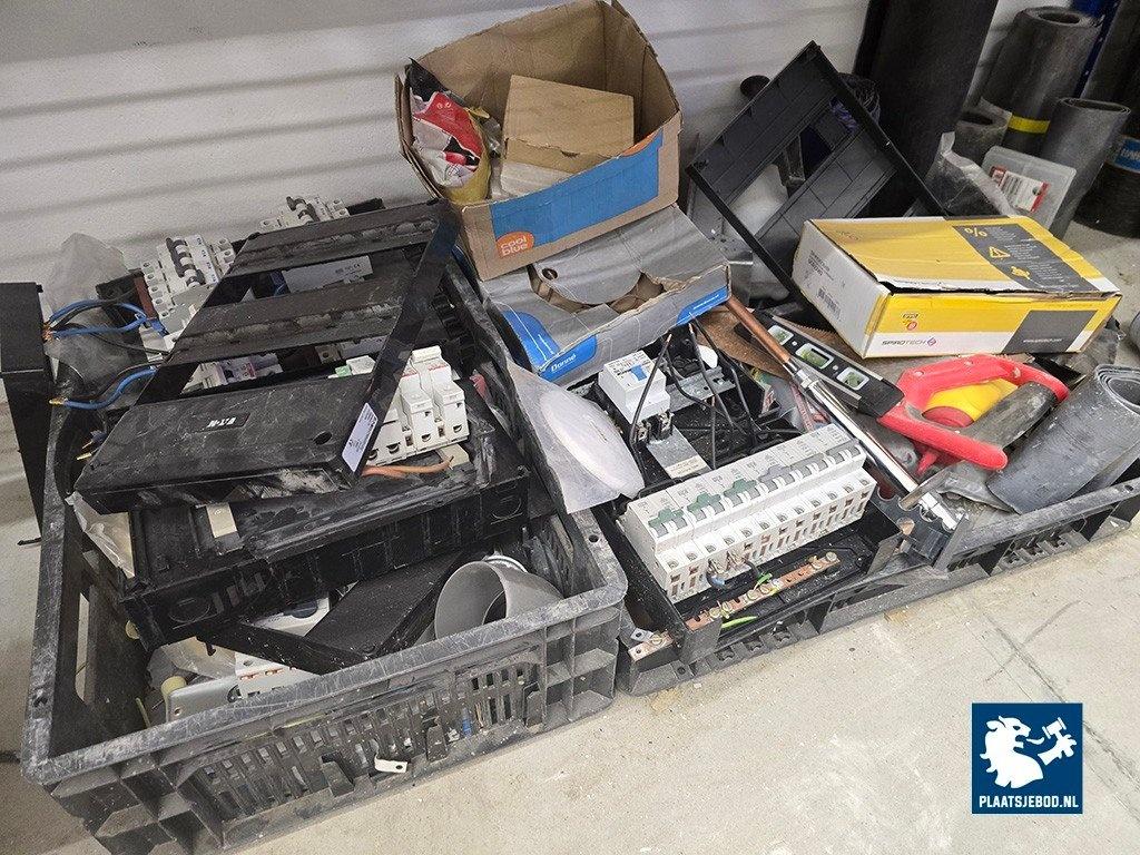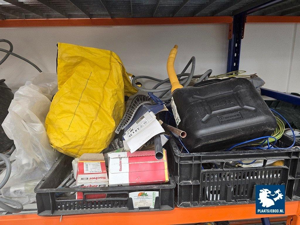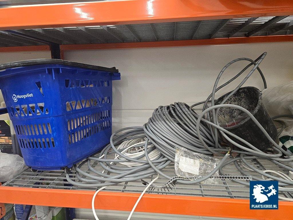 3 x Sectie stelling ca. 225 x 60 x 200 gedeeltelijk met inhoud waaronder diverse materialen, kabels, leidingen, gipsplaat, PVC materiaal, etc. N.B. Dit kavel dient na 13.00 uur opgehaald te worden!