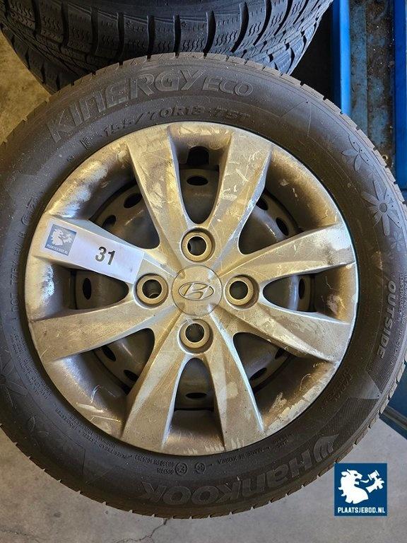 Kavel 248-031: 4 x Autoband op stalen velg met Hyundai wieldop, merk Hankook, Kynergy ECO 155/70R13