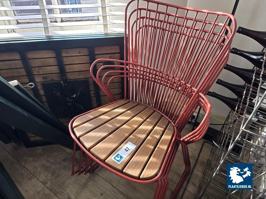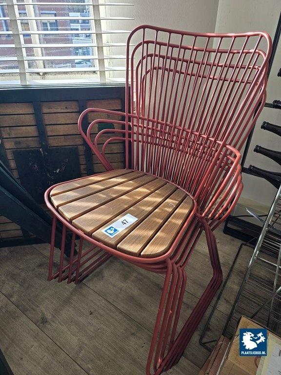Kavel 318-047: 4 x Draadstalen restaurantstoel met houten zitting